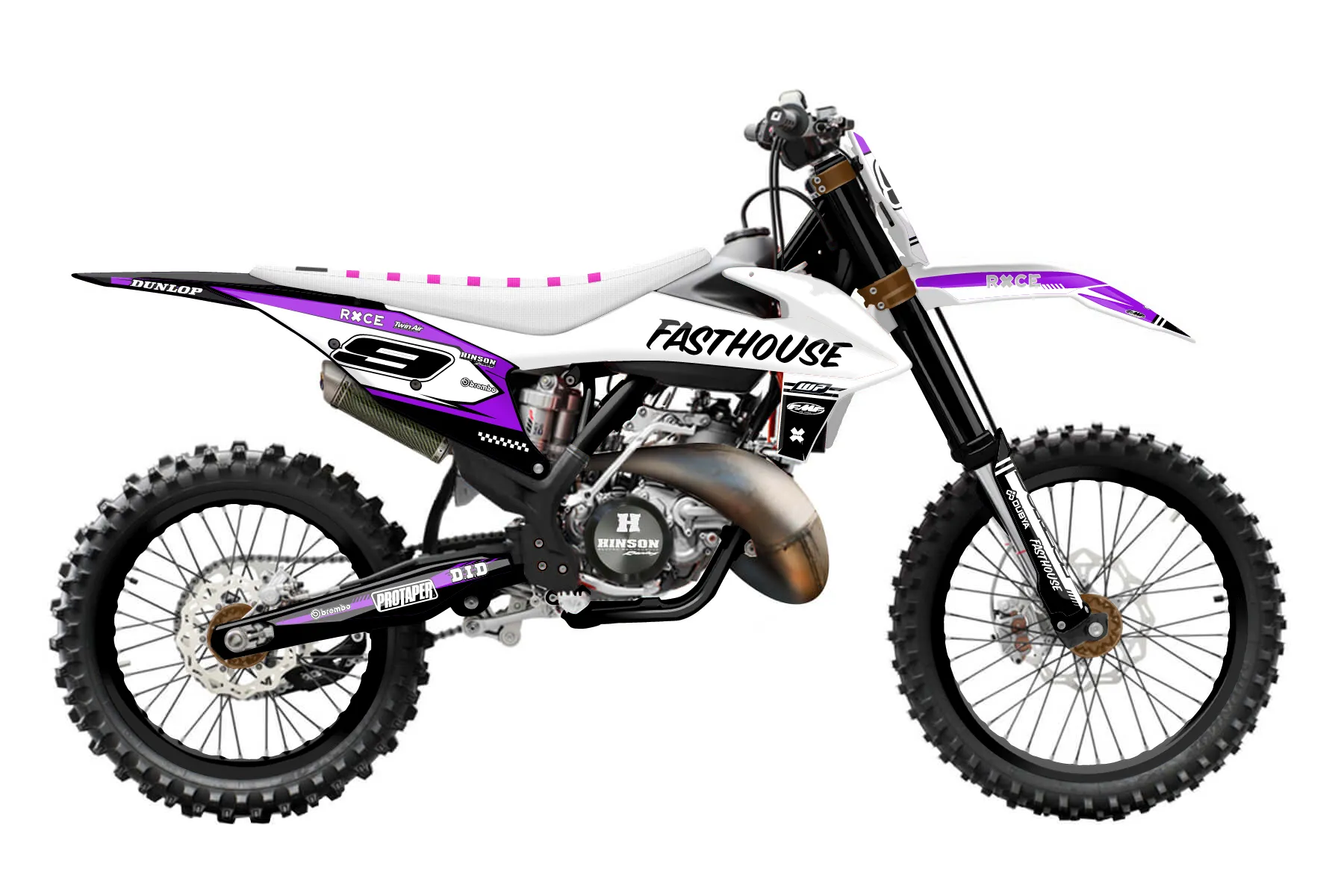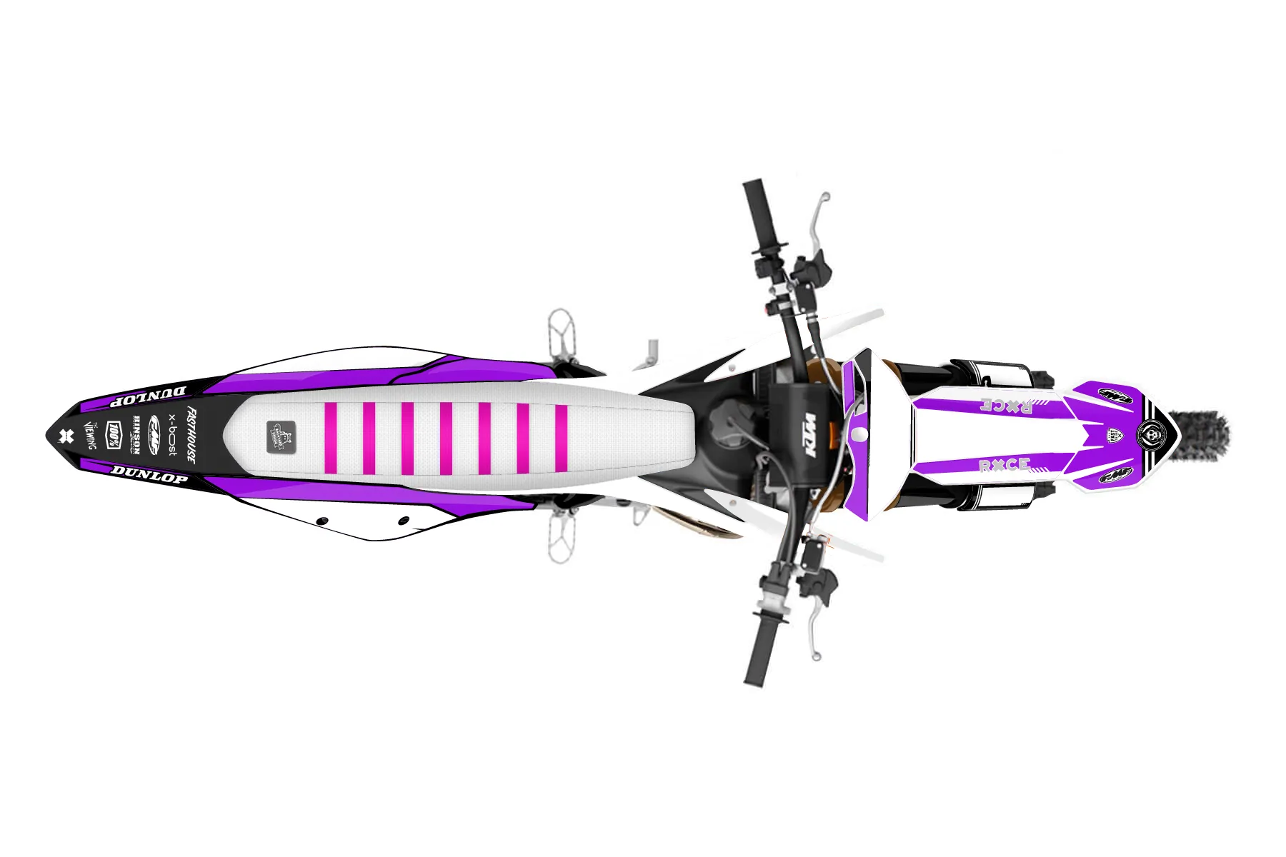 «White and purple » — готовый комплект графики серии Untucked для KTM MX Graphic Kit KTM SX 125 2019. В комплекте: графика на бак и боковые облицовки, крылья (переднее и заднее), передний щиток, номерные таблички, защита вилки. Материал: ПВХ-винил 80 мкр с холодной ламинацией 300 мкр, общая толщина 380 мкр; покрытие глянцевое или матовое на выбор. Устойчив к UV-излучению, воде, бензину и мойке высокого давления. Клей акриловый на сольвентной основе — постоянный, для гибких пластиков. На простых поверхностях монтируется без нагрева; для сложных изгибов рекомендуем фен. Этот пресет можно заказать как есть или взять за основу в конструкторе: поменять цвета, добавить стартовый номер и свой бренд. Производство — 3–5 рабочих дней, доставка по России СДЭКом или Почтой, по СНГ — курьерскими службами.
