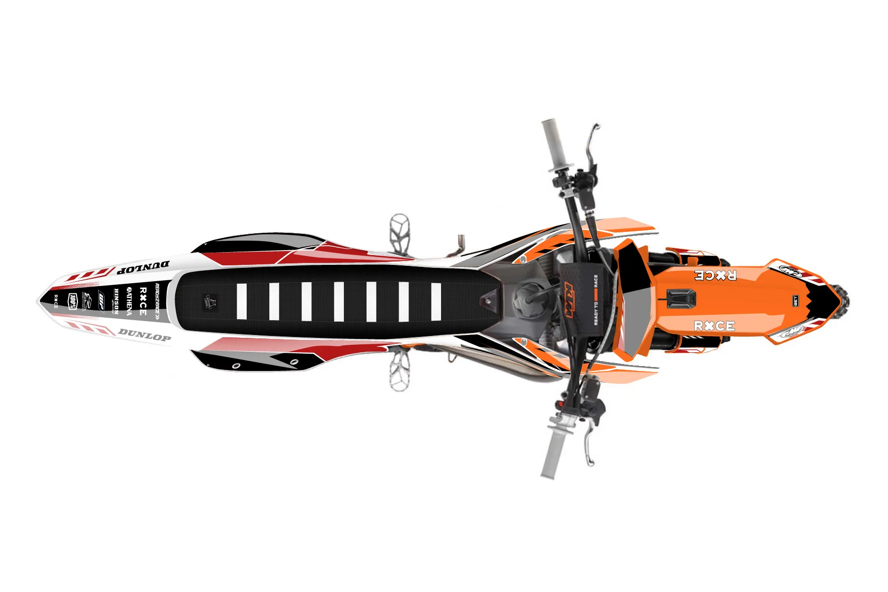 «Dude» — готовый комплект графики серии Maverick для KTM MX Graphic Kit KTM SX 125 2025. В комплекте: графика на бак и боковые облицовки, крылья (переднее и заднее), передний щиток, номерные таблички, защита вилки. Материал: ПВХ-винил 80 мкр с холодной ламинацией 300 мкр, общая толщина 380 мкр; покрытие глянцевое или матовое на выбор. Устойчив к UV-излучению, воде, бензину и мойке высокого давления. Клей акриловый на сольвентной основе — постоянный, для гибких пластиков. На простых поверхностях монтируется без нагрева; для сложных изгибов рекомендуем фен. Этот пресет можно заказать как есть или взять за основу в конструкторе: поменять цвета, добавить стартовый номер и свой бренд. Производство — 3–5 рабочих дней, доставка по России СДЭКом или Почтой, по СНГ — курьерскими службами.