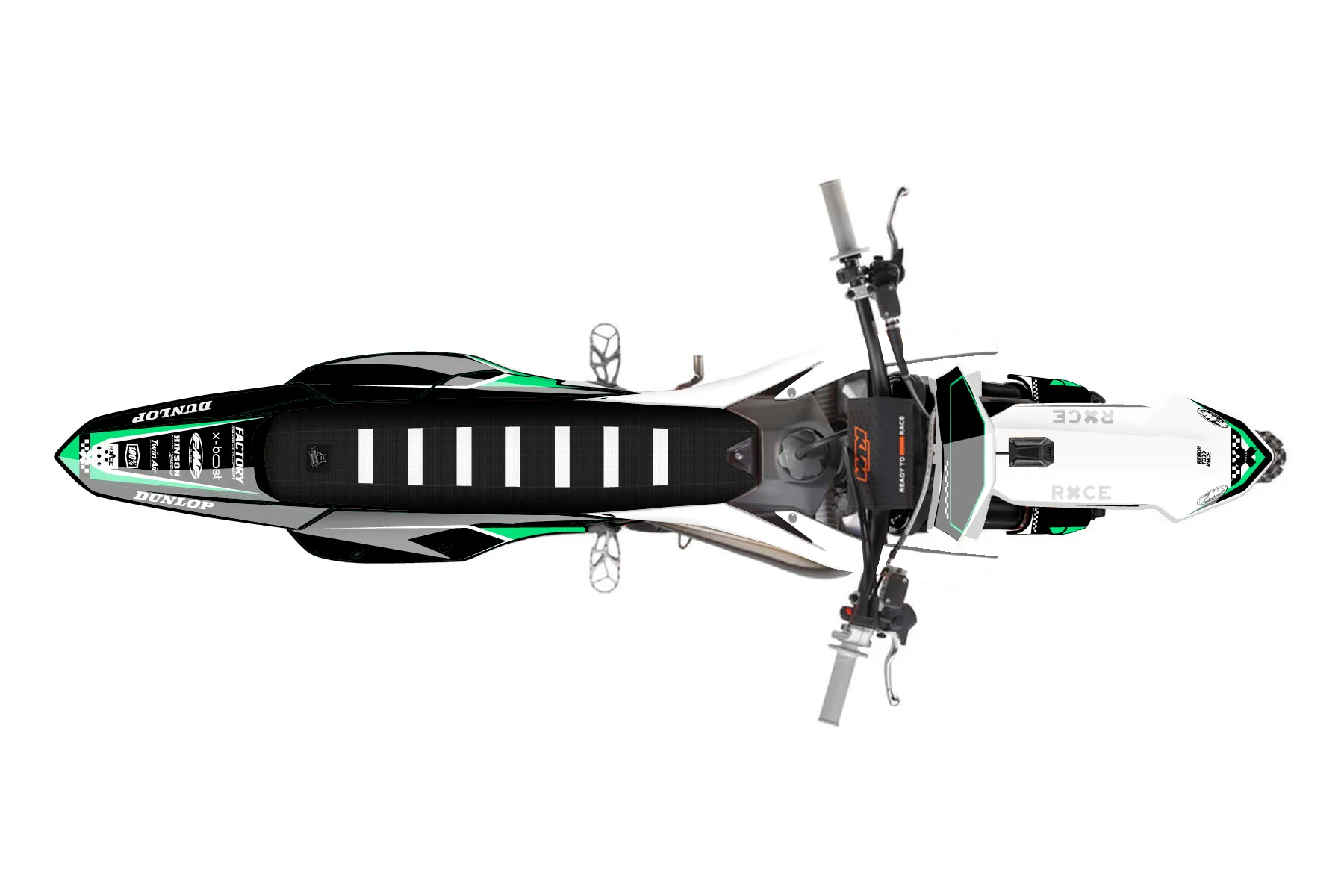 «Supervision» — готовый комплект графики серии Staple для KTM MX Graphic Kit KTM SX 125 2025. В комплекте: графика на бак и боковые облицовки, крылья (переднее и заднее), передний щиток, номерные таблички, защита вилки. Материал: ПВХ-винил 80 мкр с холодной ламинацией 300 мкр, общая толщина 380 мкр; покрытие глянцевое или матовое на выбор. Устойчив к UV-излучению, воде, бензину и мойке высокого давления. Клей акриловый на сольвентной основе — постоянный, для гибких пластиков. На простых поверхностях монтируется без нагрева; для сложных изгибов рекомендуем фен. Этот пресет можно заказать как есть или взять за основу в конструкторе: поменять цвета, добавить стартовый номер и свой бренд. Производство — 3–5 рабочих дней, доставка по России СДЭКом или Почтой, по СНГ — курьерскими службами.