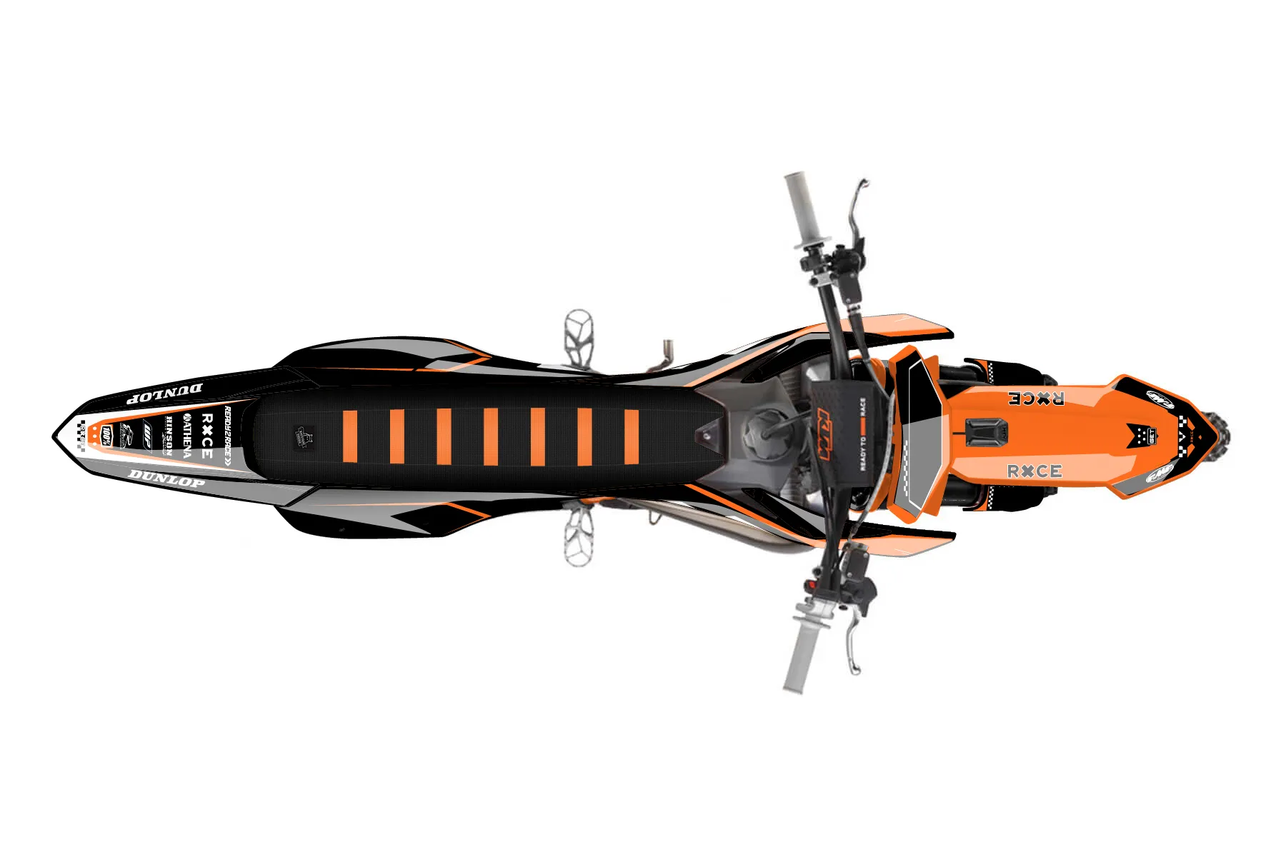 «Zebra» — готовый комплект графики серии Staple для KTM MX Graphic Kit KTM SX 125 2025. В комплекте: графика на бак и боковые облицовки, крылья (переднее и заднее), передний щиток, номерные таблички, защита вилки. Материал: ПВХ-винил 80 мкр с холодной ламинацией 300 мкр, общая толщина 380 мкр; покрытие глянцевое или матовое на выбор. Устойчив к UV-излучению, воде, бензину и мойке высокого давления. Клей акриловый на сольвентной основе — постоянный, для гибких пластиков. На простых поверхностях монтируется без нагрева; для сложных изгибов рекомендуем фен. Этот пресет можно заказать как есть или взять за основу в конструкторе: поменять цвета, добавить стартовый номер и свой бренд. Производство — 3–5 рабочих дней, доставка по России СДЭКом или Почтой, по СНГ — курьерскими службами.