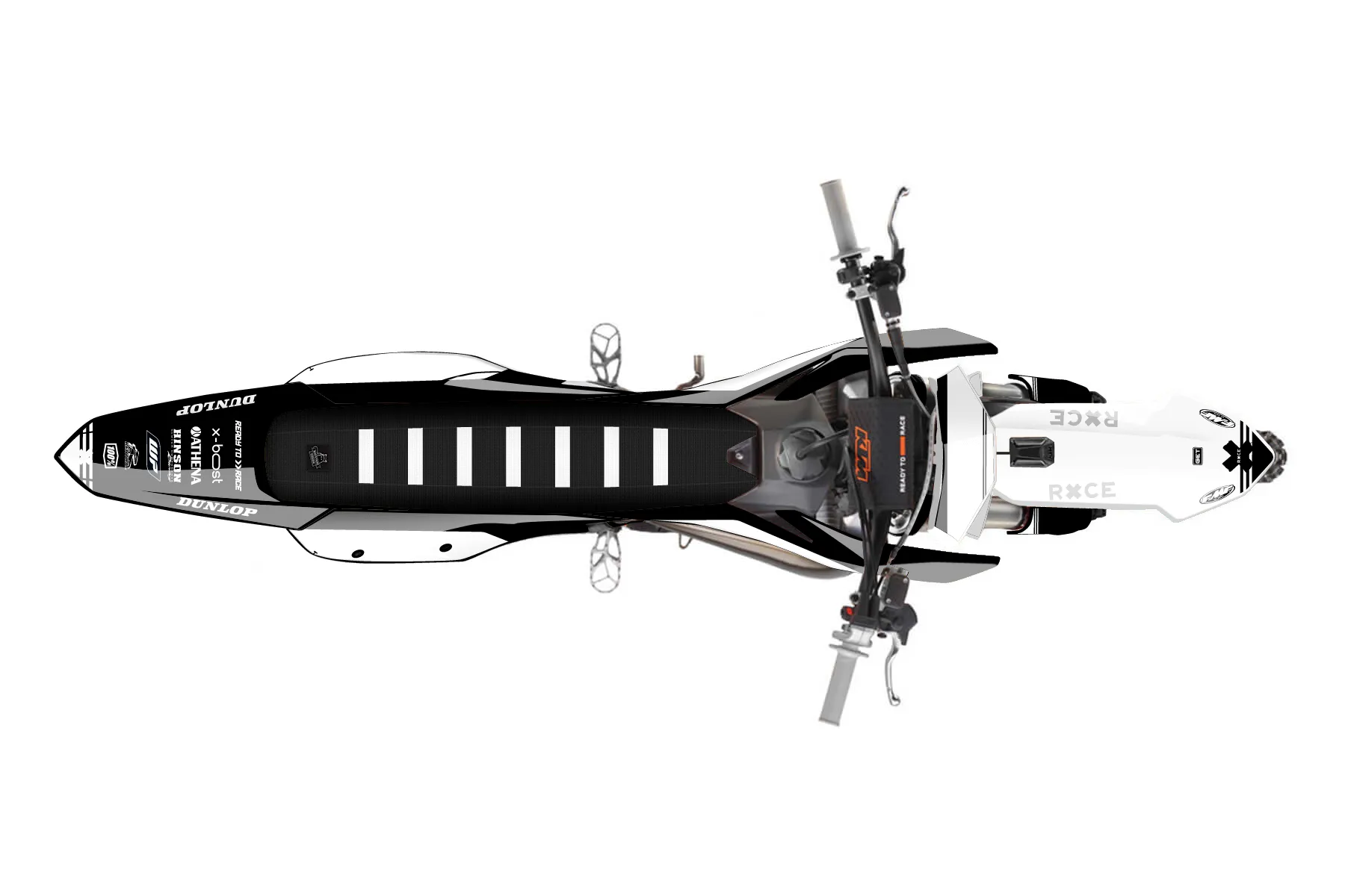 «Specific» — готовый комплект графики серии Untucked для KTM MX Graphic Kit KTM SX 125 2025. В комплекте: графика на бак и боковые облицовки, крылья (переднее и заднее), передний щиток, номерные таблички, защита вилки. Материал: ПВХ-винил 80 мкр с холодной ламинацией 300 мкр, общая толщина 380 мкр; покрытие глянцевое или матовое на выбор. Устойчив к UV-излучению, воде, бензину и мойке высокого давления. Клей акриловый на сольвентной основе — постоянный, для гибких пластиков. На простых поверхностях монтируется без нагрева; для сложных изгибов рекомендуем фен. Этот пресет можно заказать как есть или взять за основу в конструкторе: поменять цвета, добавить стартовый номер и свой бренд. Производство — 3–5 рабочих дней, доставка по России СДЭКом или Почтой, по СНГ — курьерскими службами.