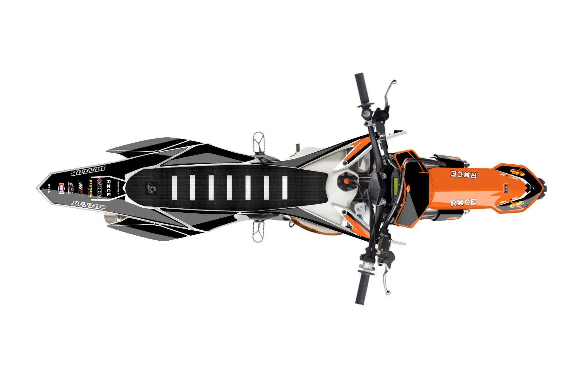 «Throwback» — готовый комплект графики серии Flow для KTM MX Graphic Kit KTM SX 150 2013. В комплекте: графика на бак и боковые облицовки, крылья (переднее и заднее), передний щиток, номерные таблички, защита вилки. Материал: ПВХ-винил 80 мкр с холодной ламинацией 300 мкр, общая толщина 380 мкр; покрытие глянцевое или матовое на выбор. Устойчив к UV-излучению, воде, бензину и мойке высокого давления. Клей акриловый на сольвентной основе — постоянный, для гибких пластиков. На простых поверхностях монтируется без нагрева; для сложных изгибов рекомендуем фен. Этот пресет можно заказать как есть или взять за основу в конструкторе: поменять цвета, добавить стартовый номер и свой бренд. Производство — 3–5 рабочих дней, доставка по России СДЭКом или Почтой, по СНГ — курьерскими службами.