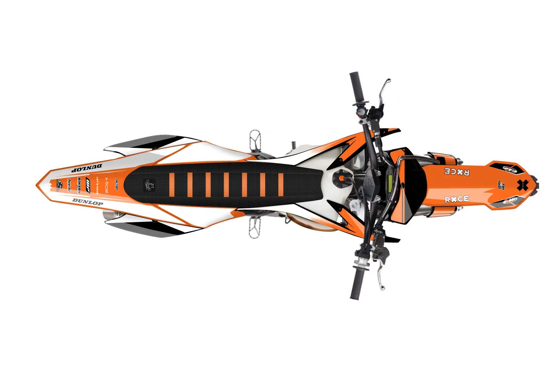«12 150sx xc » — готовый комплект графики серии Maverick для KTM MX Graphic Kit KTM SX 150 2013. В комплекте: графика на бак и боковые облицовки, крылья (переднее и заднее), передний щиток, номерные таблички, защита вилки. Материал: ПВХ-винил 80 мкр с холодной ламинацией 300 мкр, общая толщина 380 мкр; покрытие глянцевое или матовое на выбор. Устойчив к UV-излучению, воде, бензину и мойке высокого давления. Клей акриловый на сольвентной основе — постоянный, для гибких пластиков. На простых поверхностях монтируется без нагрева; для сложных изгибов рекомендуем фен. Этот пресет можно заказать как есть или взять за основу в конструкторе: поменять цвета, добавить стартовый номер и свой бренд. Производство — 3–5 рабочих дней, доставка по России СДЭКом или Почтой, по СНГ — курьерскими службами.