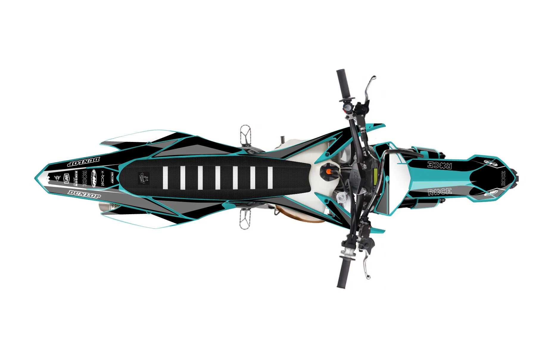 «Aloha» — готовый комплект графики серии Maverick для KTM MX Graphic Kit KTM SX 150 2013. В комплекте: графика на бак и боковые облицовки, крылья (переднее и заднее), передний щиток, номерные таблички, защита вилки. Материал: ПВХ-винил 80 мкр с холодной ламинацией 300 мкр, общая толщина 380 мкр; покрытие глянцевое или матовое на выбор. Устойчив к UV-излучению, воде, бензину и мойке высокого давления. Клей акриловый на сольвентной основе — постоянный, для гибких пластиков. На простых поверхностях монтируется без нагрева; для сложных изгибов рекомендуем фен. Этот пресет можно заказать как есть или взять за основу в конструкторе: поменять цвета, добавить стартовый номер и свой бренд. Производство — 3–5 рабочих дней, доставка по России СДЭКом или Почтой, по СНГ — курьерскими службами.