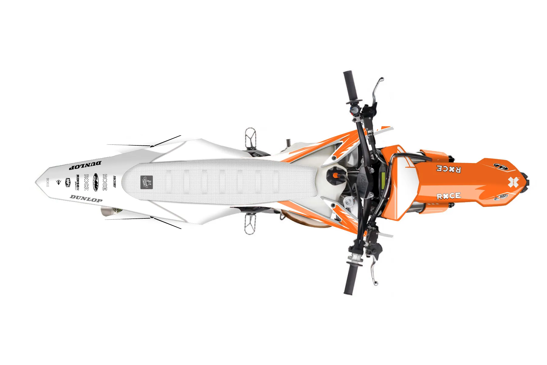 «Bones» — готовый комплект графики серии Maverick для KTM MX Graphic Kit KTM SX 150 2013. В комплекте: графика на бак и боковые облицовки, крылья (переднее и заднее), передний щиток, номерные таблички, защита вилки. Материал: ПВХ-винил 80 мкр с холодной ламинацией 300 мкр, общая толщина 380 мкр; покрытие глянцевое или матовое на выбор. Устойчив к UV-излучению, воде, бензину и мойке высокого давления. Клей акриловый на сольвентной основе — постоянный, для гибких пластиков. На простых поверхностях монтируется без нагрева; для сложных изгибов рекомендуем фен. Этот пресет можно заказать как есть или взять за основу в конструкторе: поменять цвета, добавить стартовый номер и свой бренд. Производство — 3–5 рабочих дней, доставка по России СДЭКом или Почтой, по СНГ — курьерскими службами.