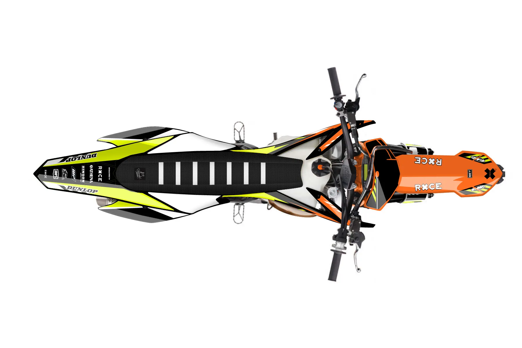 «Chase Neon» — готовый комплект графики серии Maverick для KTM MX Graphic Kit KTM SX 150 2013. В комплекте: графика на бак и боковые облицовки, крылья (переднее и заднее), передний щиток, номерные таблички, защита вилки. Материал: ПВХ-винил 80 мкр с холодной ламинацией 300 мкр, общая толщина 380 мкр; покрытие глянцевое или матовое на выбор. Устойчив к UV-излучению, воде, бензину и мойке высокого давления. Клей акриловый на сольвентной основе — постоянный, для гибких пластиков. На простых поверхностях монтируется без нагрева; для сложных изгибов рекомендуем фен. Этот пресет можно заказать как есть или взять за основу в конструкторе: поменять цвета, добавить стартовый номер и свой бренд. Производство — 3–5 рабочих дней, доставка по России СДЭКом или Почтой, по СНГ — курьерскими службами.
