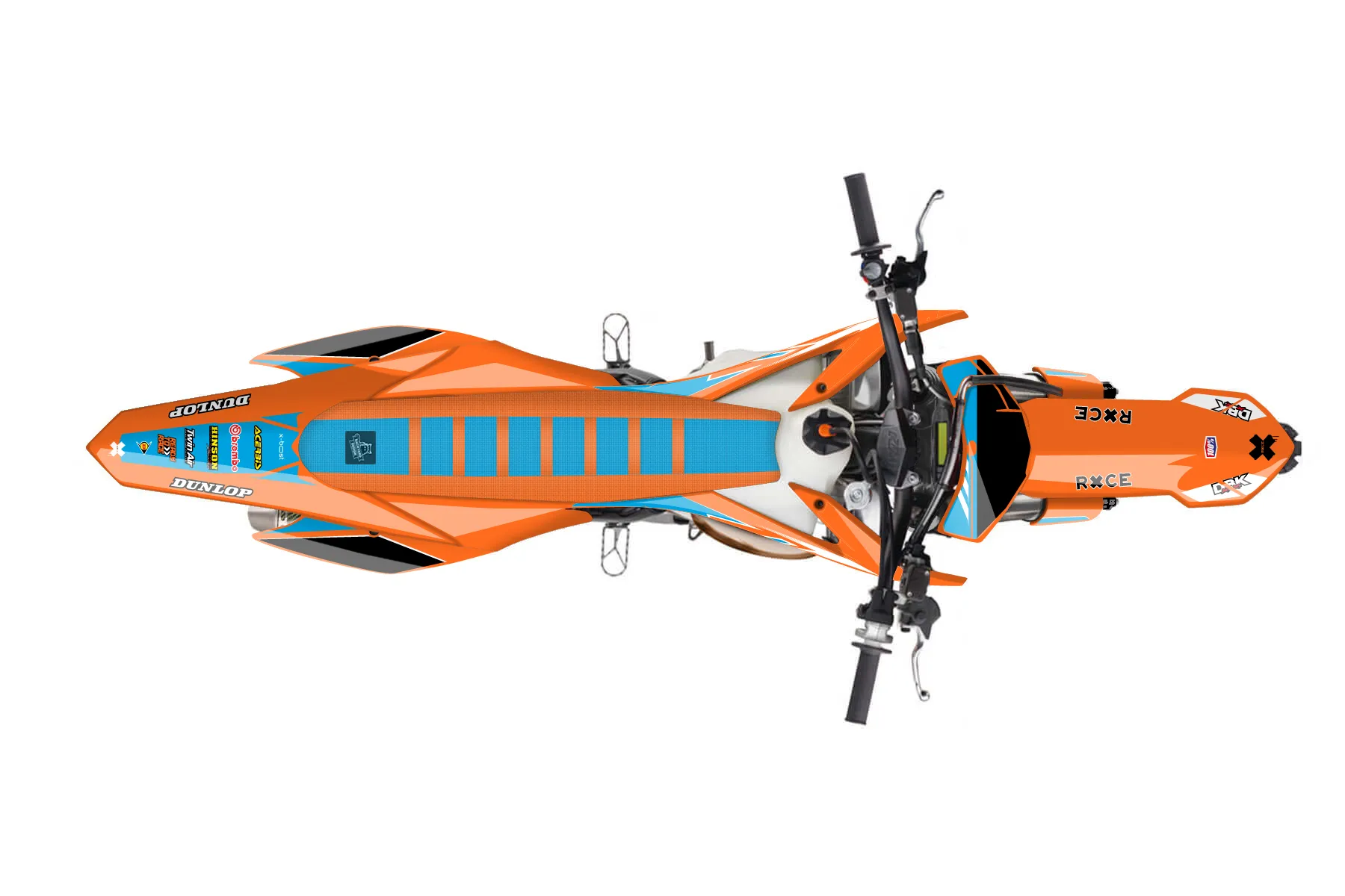 «Coach» — готовый комплект графики серии Maverick для KTM MX Graphic Kit KTM SX 150 2013. В комплекте: графика на бак и боковые облицовки, крылья (переднее и заднее), передний щиток, номерные таблички, защита вилки. Материал: ПВХ-винил 80 мкр с холодной ламинацией 300 мкр, общая толщина 380 мкр; покрытие глянцевое или матовое на выбор. Устойчив к UV-излучению, воде, бензину и мойке высокого давления. Клей акриловый на сольвентной основе — постоянный, для гибких пластиков. На простых поверхностях монтируется без нагрева; для сложных изгибов рекомендуем фен. Этот пресет можно заказать как есть или взять за основу в конструкторе: поменять цвета, добавить стартовый номер и свой бренд. Производство — 3–5 рабочих дней, доставка по России СДЭКом или Почтой, по СНГ — курьерскими службами.