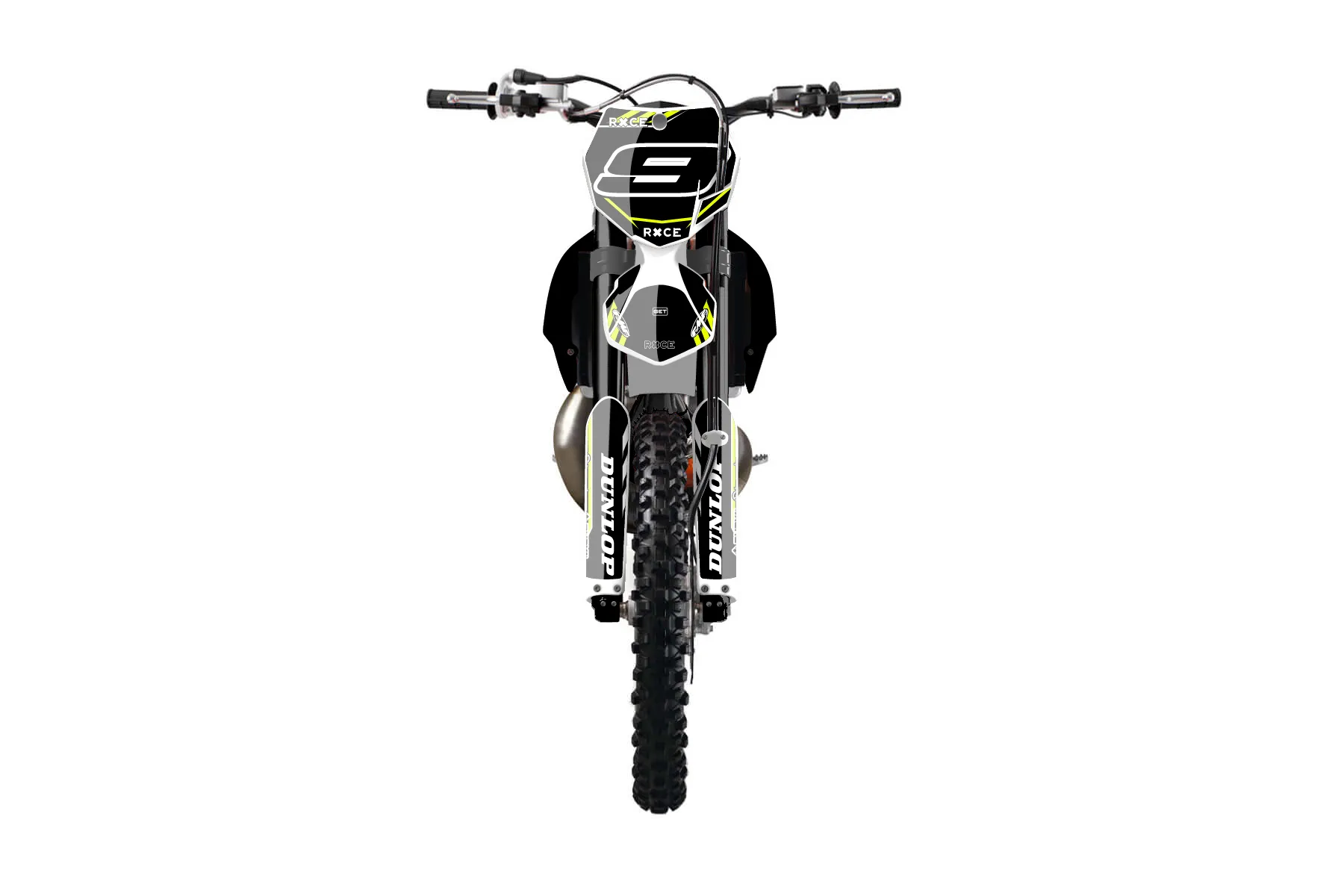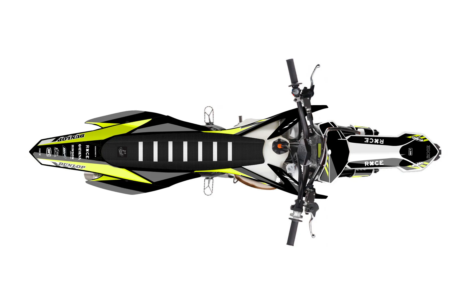 «Daze Fluo» — готовый комплект графики серии Maverick для KTM MX Graphic Kit KTM SX 150 2013. В комплекте: графика на бак и боковые облицовки, крылья (переднее и заднее), передний щиток, номерные таблички, защита вилки. Материал: ПВХ-винил 80 мкр с холодной ламинацией 300 мкр, общая толщина 380 мкр; покрытие глянцевое или матовое на выбор. Устойчив к UV-излучению, воде, бензину и мойке высокого давления. Клей акриловый на сольвентной основе — постоянный, для гибких пластиков. На простых поверхностях монтируется без нагрева; для сложных изгибов рекомендуем фен. Этот пресет можно заказать как есть или взять за основу в конструкторе: поменять цвета, добавить стартовый номер и свой бренд. Производство — 3–5 рабочих дней, доставка по России СДЭКом или Почтой, по СНГ — курьерскими службами.