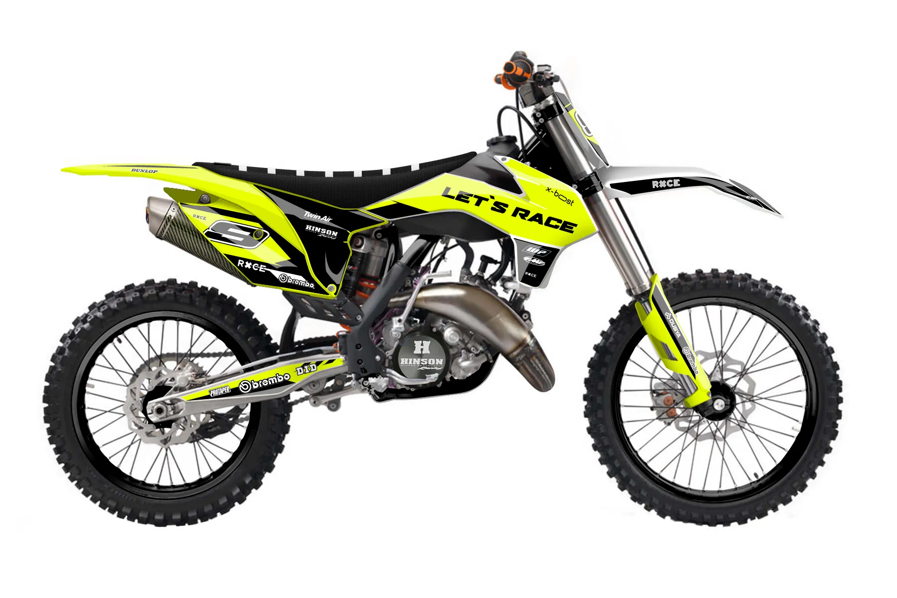«Ryder Neon» — готовый комплект графики серии Maverick для KTM MX Graphic Kit KTM SX 150 2013. В комплекте: графика на бак и боковые облицовки, крылья (переднее и заднее), передний щиток, номерные таблички, защита вилки. Материал: ПВХ-винил 80 мкр с холодной ламинацией 300 мкр, общая толщина 380 мкр; покрытие глянцевое или матовое на выбор. Устойчив к UV-излучению, воде, бензину и мойке высокого давления. Клей акриловый на сольвентной основе — постоянный, для гибких пластиков. На простых поверхностях монтируется без нагрева; для сложных изгибов рекомендуем фен. Этот пресет можно заказать как есть или взять за основу в конструкторе: поменять цвета, добавить стартовый номер и свой бренд. Производство — 3–5 рабочих дней, доставка по России СДЭКом или Почтой, по СНГ — курьерскими службами.