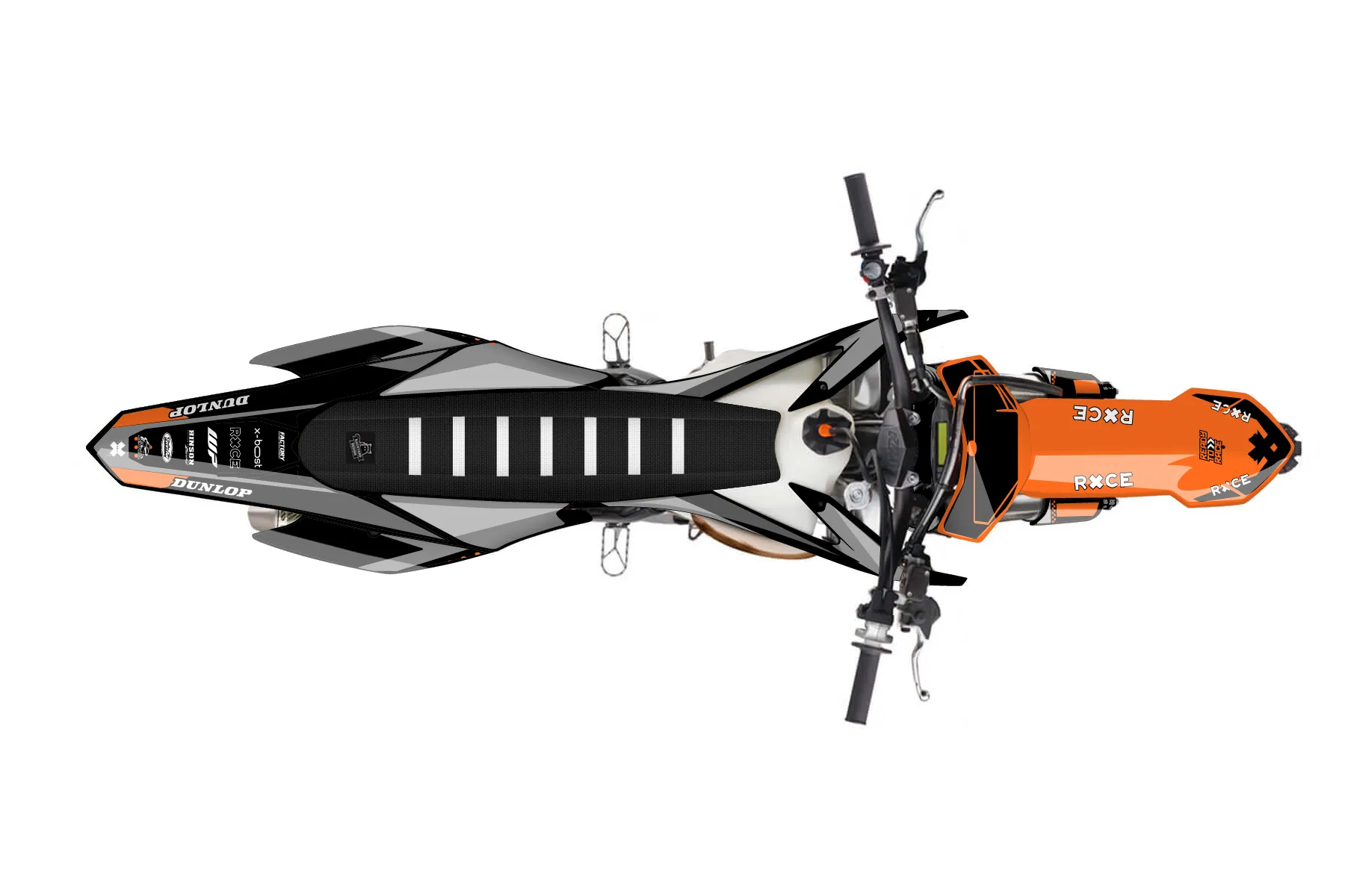 «Cape» — готовый комплект графики серии Staple для KTM MX Graphic Kit KTM SX 150 2013. В комплекте: графика на бак и боковые облицовки, крылья (переднее и заднее), передний щиток, номерные таблички, защита вилки. Материал: ПВХ-винил 80 мкр с холодной ламинацией 300 мкр, общая толщина 380 мкр; покрытие глянцевое или матовое на выбор. Устойчив к UV-излучению, воде, бензину и мойке высокого давления. Клей акриловый на сольвентной основе — постоянный, для гибких пластиков. На простых поверхностях монтируется без нагрева; для сложных изгибов рекомендуем фен. Этот пресет можно заказать как есть или взять за основу в конструкторе: поменять цвета, добавить стартовый номер и свой бренд. Производство — 3–5 рабочих дней, доставка по России СДЭКом или Почтой, по СНГ — курьерскими службами.