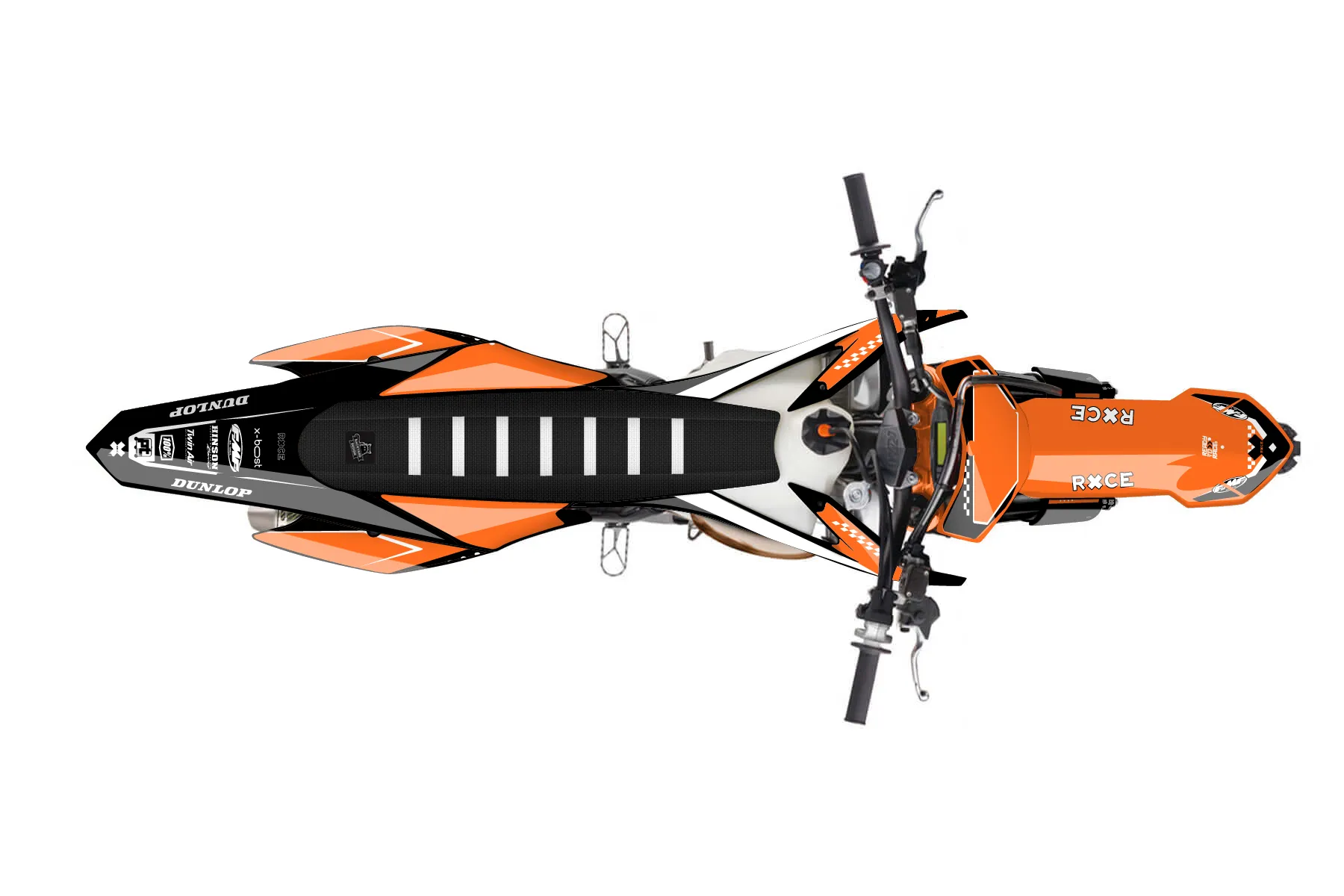 «Classy» — готовый комплект графики серии Staple для KTM MX Graphic Kit KTM SX 150 2013. В комплекте: графика на бак и боковые облицовки, крылья (переднее и заднее), передний щиток, номерные таблички, защита вилки. Материал: ПВХ-винил 80 мкр с холодной ламинацией 300 мкр, общая толщина 380 мкр; покрытие глянцевое или матовое на выбор. Устойчив к UV-излучению, воде, бензину и мойке высокого давления. Клей акриловый на сольвентной основе — постоянный, для гибких пластиков. На простых поверхностях монтируется без нагрева; для сложных изгибов рекомендуем фен. Этот пресет можно заказать как есть или взять за основу в конструкторе: поменять цвета, добавить стартовый номер и свой бренд. Производство — 3–5 рабочих дней, доставка по России СДЭКом или Почтой, по СНГ — курьерскими службами.