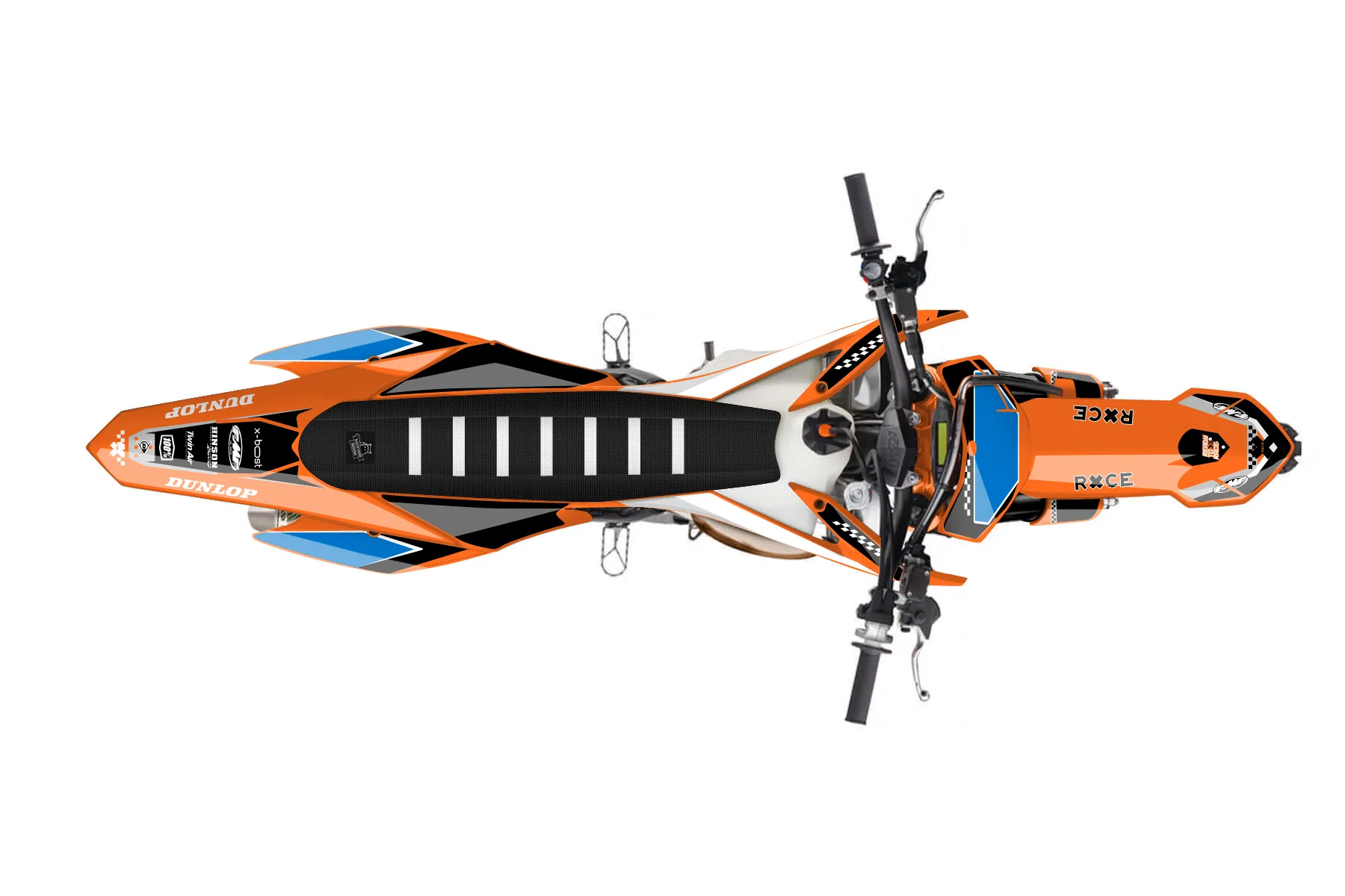 «Clean» — готовый комплект графики серии Staple для KTM MX Graphic Kit KTM SX 150 2013. В комплекте: графика на бак и боковые облицовки, крылья (переднее и заднее), передний щиток, номерные таблички, защита вилки. Материал: ПВХ-винил 80 мкр с холодной ламинацией 300 мкр, общая толщина 380 мкр; покрытие глянцевое или матовое на выбор. Устойчив к UV-излучению, воде, бензину и мойке высокого давления. Клей акриловый на сольвентной основе — постоянный, для гибких пластиков. На простых поверхностях монтируется без нагрева; для сложных изгибов рекомендуем фен. Этот пресет можно заказать как есть или взять за основу в конструкторе: поменять цвета, добавить стартовый номер и свой бренд. Производство — 3–5 рабочих дней, доставка по России СДЭКом или Почтой, по СНГ — курьерскими службами.