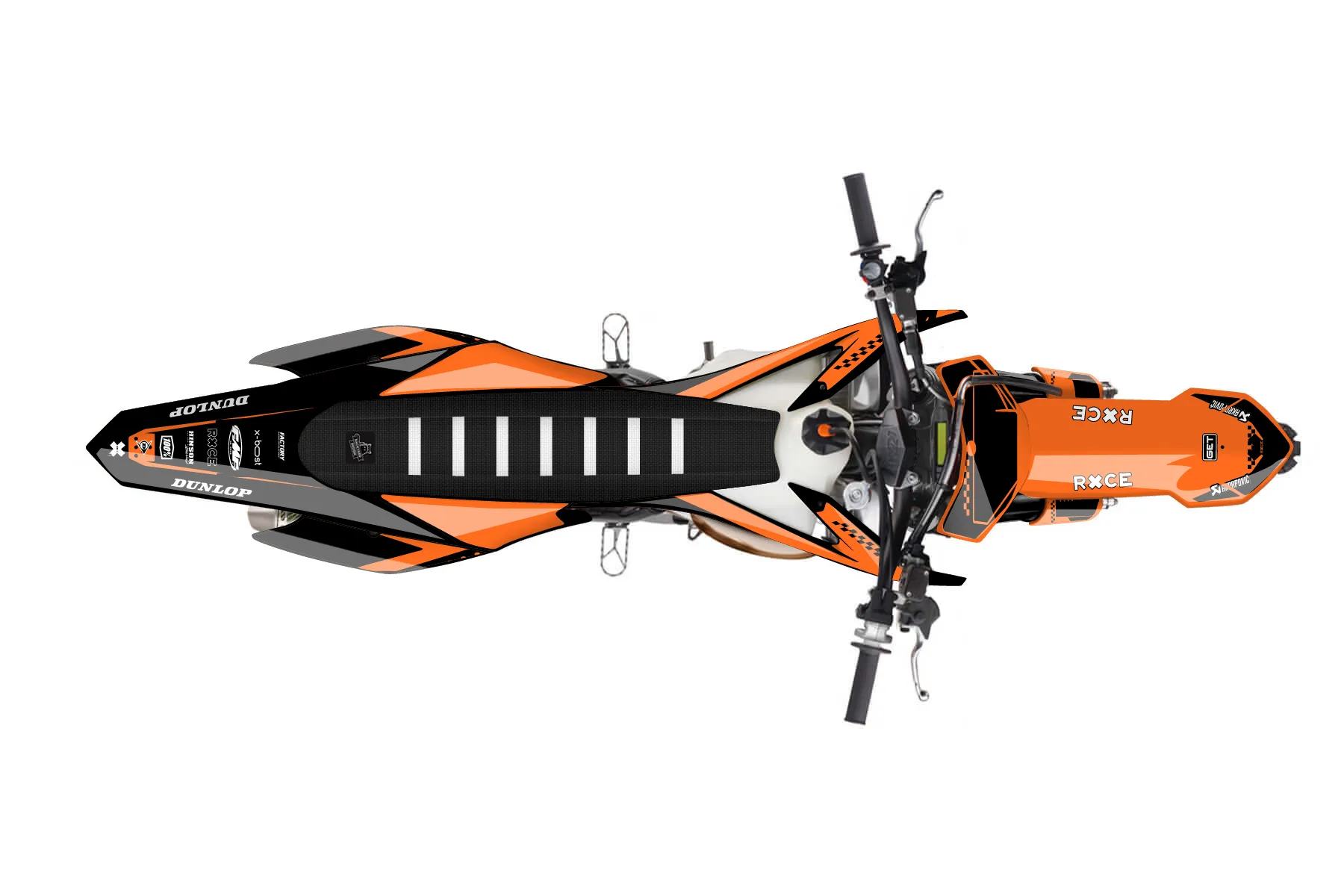 «Trait» — готовый комплект графики серии Staple для KTM MX Graphic Kit KTM SX 150 2013. В комплекте: графика на бак и боковые облицовки, крылья (переднее и заднее), передний щиток, номерные таблички, защита вилки. Материал: ПВХ-винил 80 мкр с холодной ламинацией 300 мкр, общая толщина 380 мкр; покрытие глянцевое или матовое на выбор. Устойчив к UV-излучению, воде, бензину и мойке высокого давления. Клей акриловый на сольвентной основе — постоянный, для гибких пластиков. На простых поверхностях монтируется без нагрева; для сложных изгибов рекомендуем фен. Этот пресет можно заказать как есть или взять за основу в конструкторе: поменять цвета, добавить стартовый номер и свой бренд. Производство — 3–5 рабочих дней, доставка по России СДЭКом или Почтой, по СНГ — курьерскими службами.