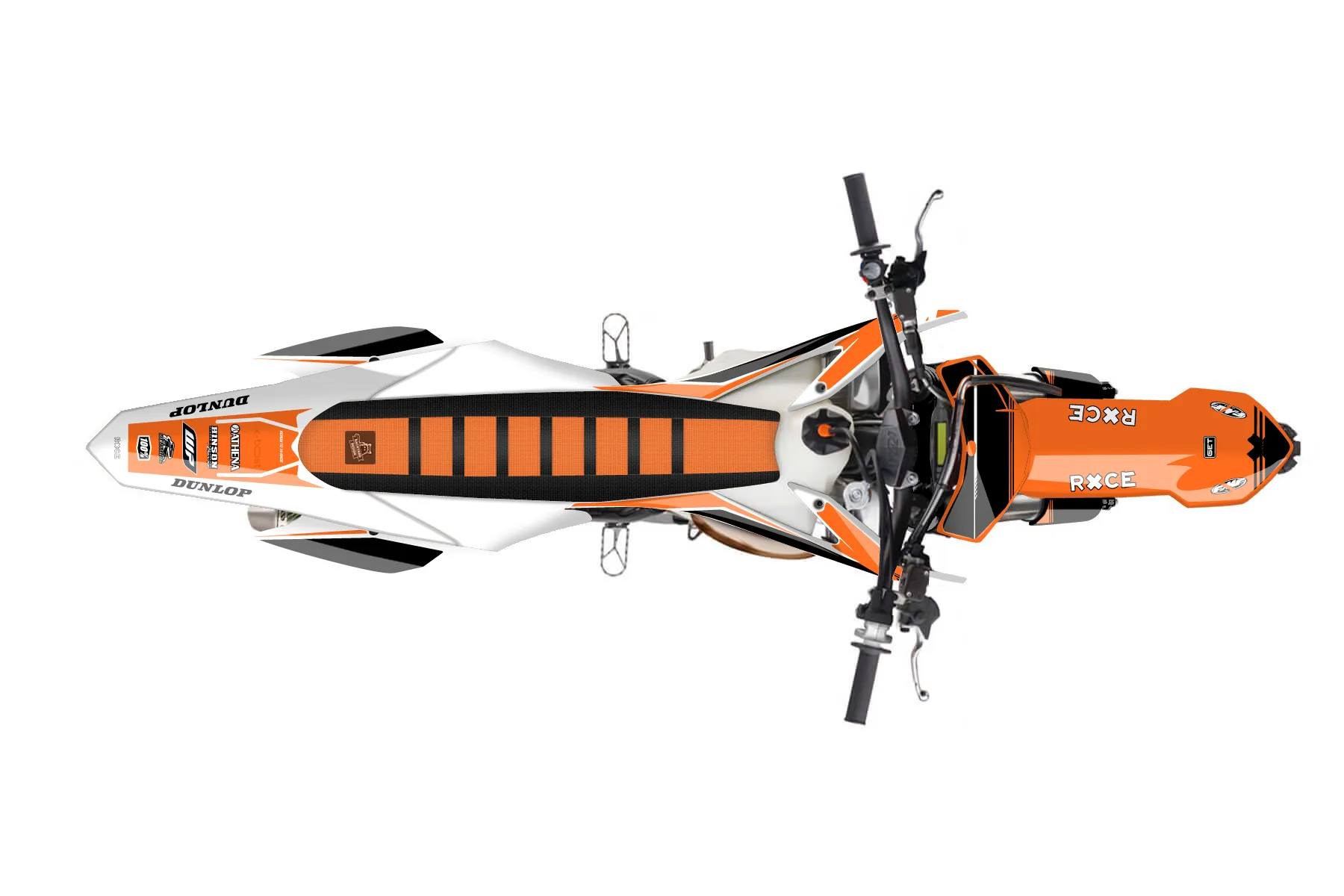 «Crowning» — готовый комплект графики серии Untucked для KTM MX Graphic Kit KTM SX 150 2013. В комплекте: графика на бак и боковые облицовки, крылья (переднее и заднее), передний щиток, номерные таблички, защита вилки. Материал: ПВХ-винил 80 мкр с холодной ламинацией 300 мкр, общая толщина 380 мкр; покрытие глянцевое или матовое на выбор. Устойчив к UV-излучению, воде, бензину и мойке высокого давления. Клей акриловый на сольвентной основе — постоянный, для гибких пластиков. На простых поверхностях монтируется без нагрева; для сложных изгибов рекомендуем фен. Этот пресет можно заказать как есть или взять за основу в конструкторе: поменять цвета, добавить стартовый номер и свой бренд. Производство — 3–5 рабочих дней, доставка по России СДЭКом или Почтой, по СНГ — курьерскими службами.