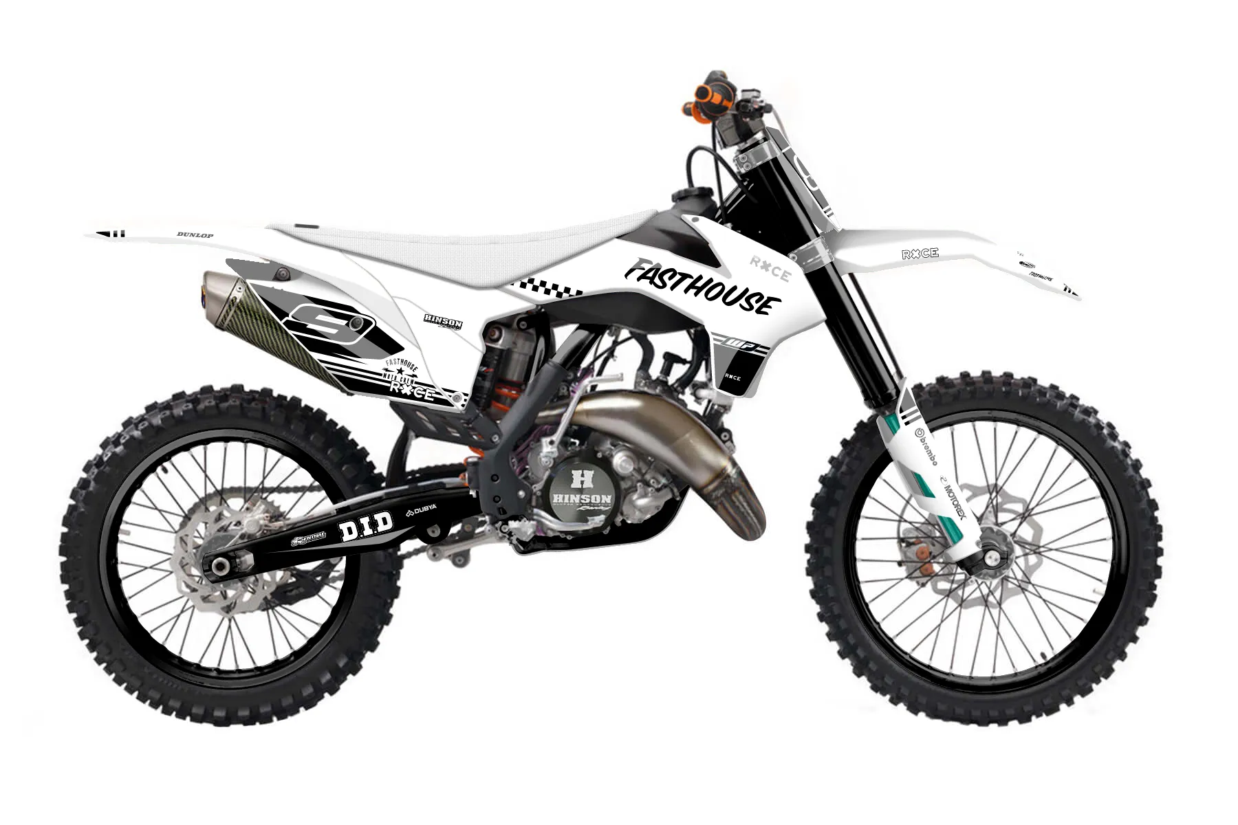«DesignHouse» — готовый комплект графики серии Untucked для KTM MX Graphic Kit KTM SX 150 2013. В комплекте: графика на бак и боковые облицовки, крылья (переднее и заднее), передний щиток, номерные таблички, защита вилки. Материал: ПВХ-винил 80 мкр с холодной ламинацией 300 мкр, общая толщина 380 мкр; покрытие глянцевое или матовое на выбор. Устойчив к UV-излучению, воде, бензину и мойке высокого давления. Клей акриловый на сольвентной основе — постоянный, для гибких пластиков. На простых поверхностях монтируется без нагрева; для сложных изгибов рекомендуем фен. Этот пресет можно заказать как есть или взять за основу в конструкторе: поменять цвета, добавить стартовый номер и свой бренд. Производство — 3–5 рабочих дней, доставка по России СДЭКом или Почтой, по СНГ — курьерскими службами.