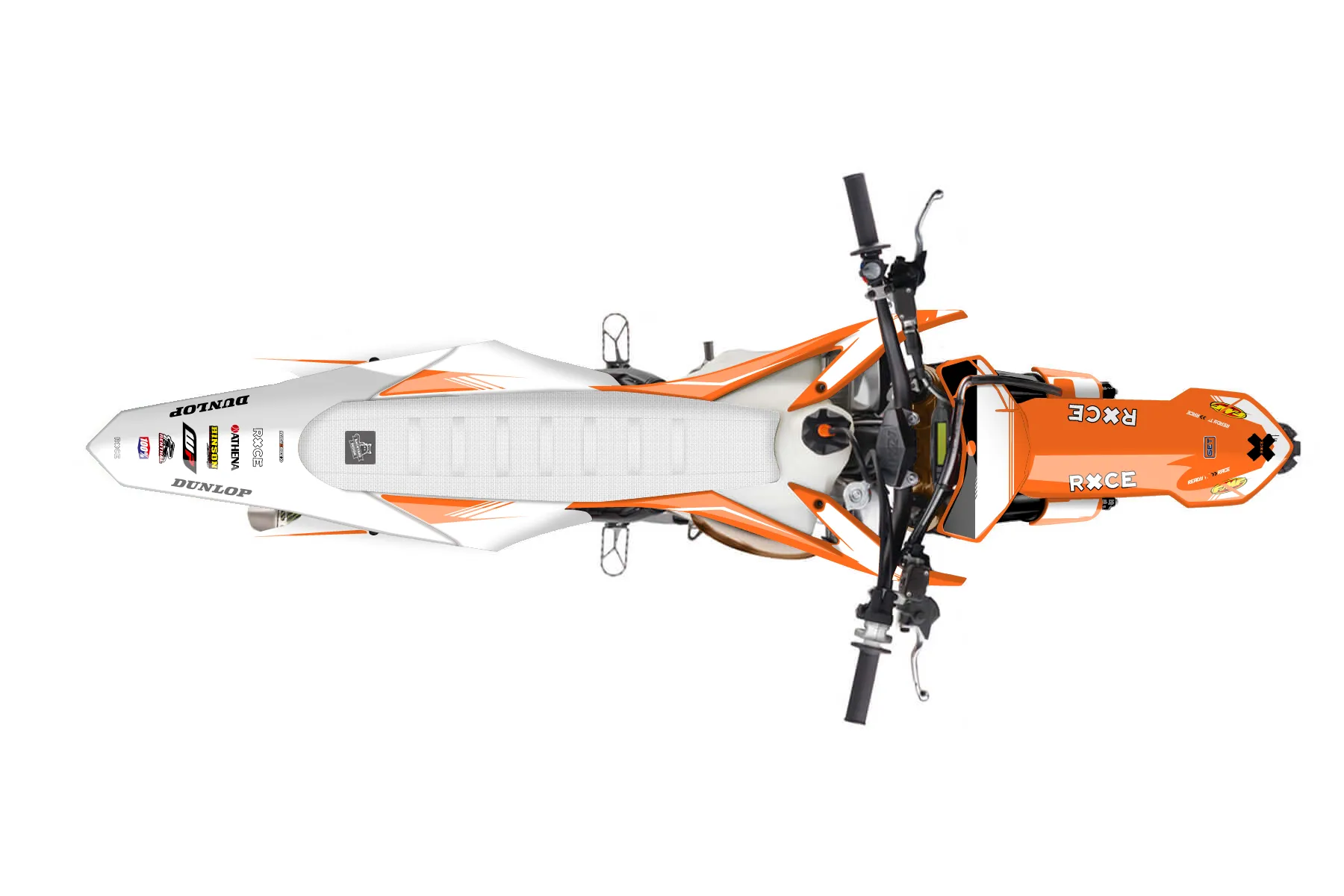 «Total» — готовый комплект графики серии Untucked для KTM MX Graphic Kit KTM SX 150 2013. В комплекте: графика на бак и боковые облицовки, крылья (переднее и заднее), передний щиток, номерные таблички, защита вилки. Материал: ПВХ-винил 80 мкр с холодной ламинацией 300 мкр, общая толщина 380 мкр; покрытие глянцевое или матовое на выбор. Устойчив к UV-излучению, воде, бензину и мойке высокого давления. Клей акриловый на сольвентной основе — постоянный, для гибких пластиков. На простых поверхностях монтируется без нагрева; для сложных изгибов рекомендуем фен. Этот пресет можно заказать как есть или взять за основу в конструкторе: поменять цвета, добавить стартовый номер и свой бренд. Производство — 3–5 рабочих дней, доставка по России СДЭКом или Почтой, по СНГ — курьерскими службами.