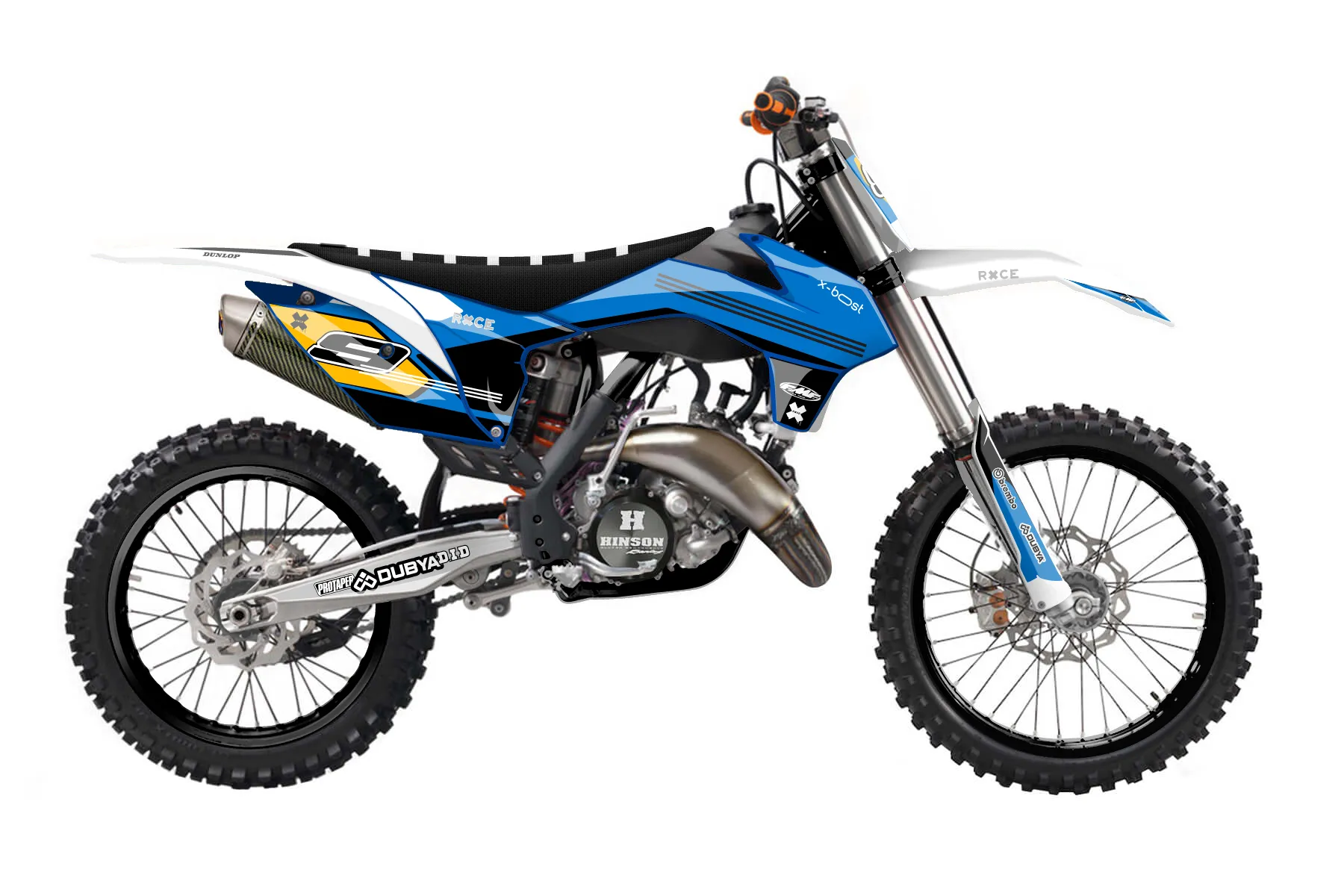 «All-Star» — готовый комплект графики серии Flow для KTM MX Graphic Kit KTM SX 150 2015. В комплекте: графика на бак и боковые облицовки, крылья (переднее и заднее), передний щиток, номерные таблички, защита вилки. Материал: ПВХ-винил 80 мкр с холодной ламинацией 300 мкр, общая толщина 380 мкр; покрытие глянцевое или матовое на выбор. Устойчив к UV-излучению, воде, бензину и мойке высокого давления. Клей акриловый на сольвентной основе — постоянный, для гибких пластиков. На простых поверхностях монтируется без нагрева; для сложных изгибов рекомендуем фен. Этот пресет можно заказать как есть или взять за основу в конструкторе: поменять цвета, добавить стартовый номер и свой бренд. Производство — 3–5 рабочих дней, доставка по России СДЭКом или Почтой, по СНГ — курьерскими службами.