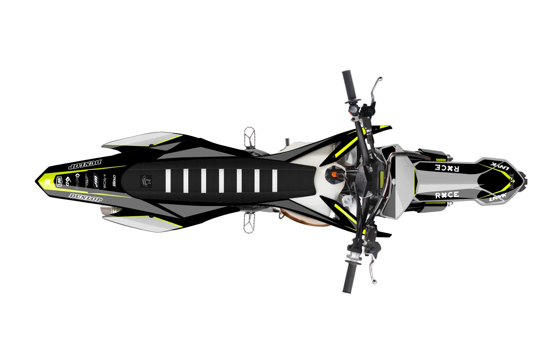«Fluo» — готовый комплект графики серии Flow для KTM MX Graphic Kit KTM SX 150 2015. В комплекте: графика на бак и боковые облицовки, крылья (переднее и заднее), передний щиток, номерные таблички, защита вилки. Материал: ПВХ-винил 80 мкр с холодной ламинацией 300 мкр, общая толщина 380 мкр; покрытие глянцевое или матовое на выбор. Устойчив к UV-излучению, воде, бензину и мойке высокого давления. Клей акриловый на сольвентной основе — постоянный, для гибких пластиков. На простых поверхностях монтируется без нагрева; для сложных изгибов рекомендуем фен. Этот пресет можно заказать как есть или взять за основу в конструкторе: поменять цвета, добавить стартовый номер и свой бренд. Производство — 3–5 рабочих дней, доставка по России СДЭКом или Почтой, по СНГ — курьерскими службами.