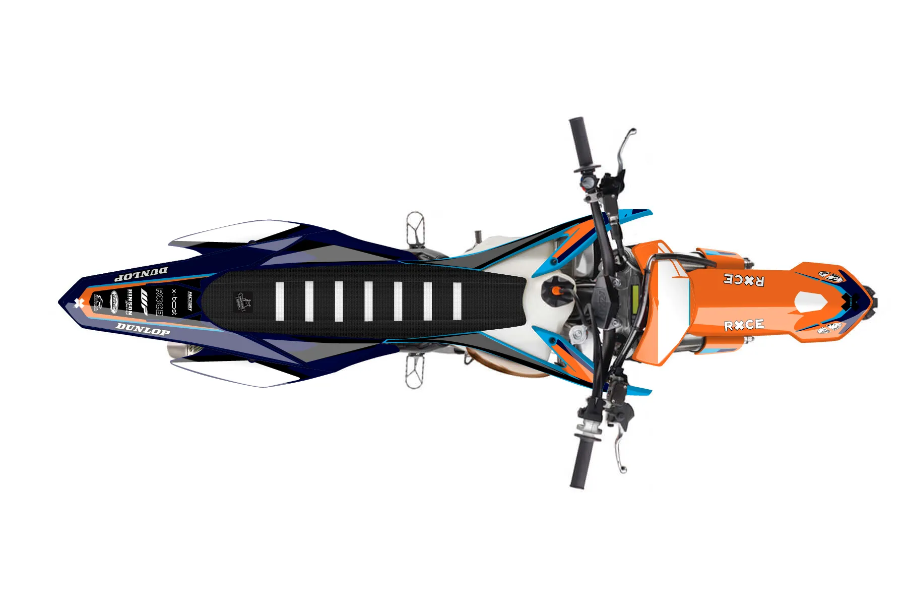 «Meta» — готовый комплект графики серии Flow для KTM MX Graphic Kit KTM SX 150 2015. В комплекте: графика на бак и боковые облицовки, крылья (переднее и заднее), передний щиток, номерные таблички, защита вилки. Материал: ПВХ-винил 80 мкр с холодной ламинацией 300 мкр, общая толщина 380 мкр; покрытие глянцевое или матовое на выбор. Устойчив к UV-излучению, воде, бензину и мойке высокого давления. Клей акриловый на сольвентной основе — постоянный, для гибких пластиков. На простых поверхностях монтируется без нагрева; для сложных изгибов рекомендуем фен. Этот пресет можно заказать как есть или взять за основу в конструкторе: поменять цвета, добавить стартовый номер и свой бренд. Производство — 3–5 рабочих дней, доставка по России СДЭКом или Почтой, по СНГ — курьерскими службами.