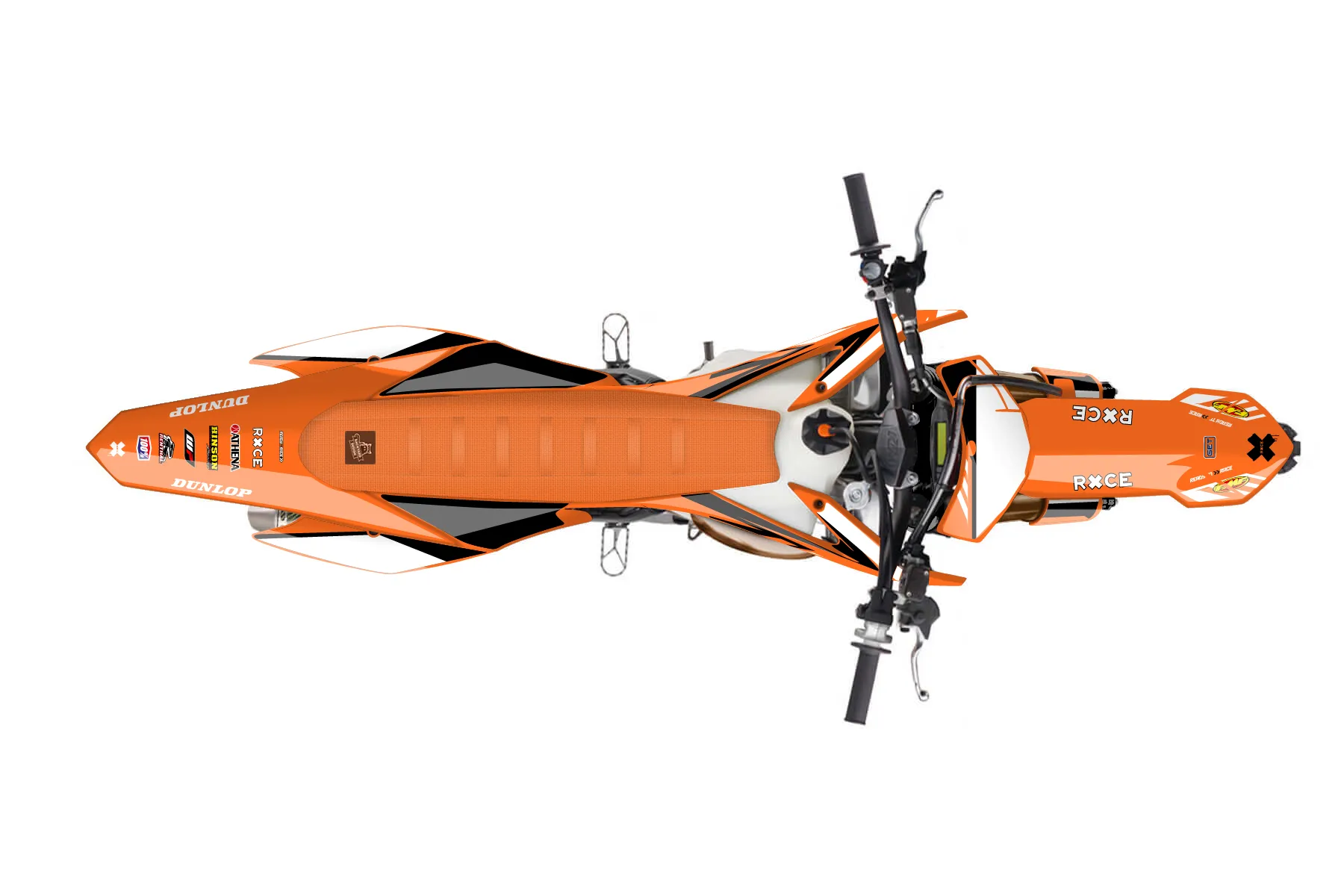 «Rapid» — готовый комплект графики серии Maverick для KTM MX Graphic Kit KTM SX 150 2015. В комплекте: графика на бак и боковые облицовки, крылья (переднее и заднее), передний щиток, номерные таблички, защита вилки. Материал: ПВХ-винил 80 мкр с холодной ламинацией 300 мкр, общая толщина 380 мкр; покрытие глянцевое или матовое на выбор. Устойчив к UV-излучению, воде, бензину и мойке высокого давления. Клей акриловый на сольвентной основе — постоянный, для гибких пластиков. На простых поверхностях монтируется без нагрева; для сложных изгибов рекомендуем фен. Этот пресет можно заказать как есть или взять за основу в конструкторе: поменять цвета, добавить стартовый номер и свой бренд. Производство — 3–5 рабочих дней, доставка по России СДЭКом или Почтой, по СНГ — курьерскими службами.