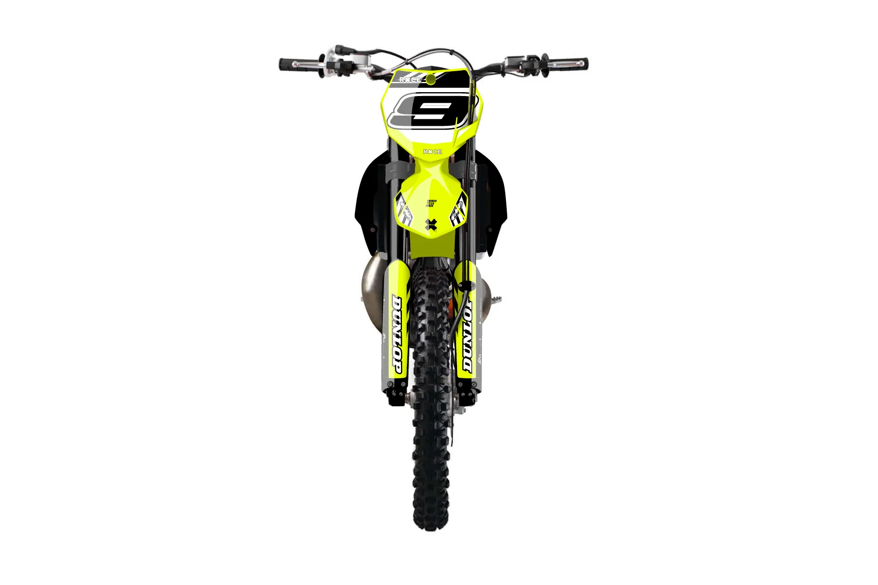 «Volt Neon» — готовый комплект графики серии Maverick для KTM MX Graphic Kit KTM SX 150 2015. В комплекте: графика на бак и боковые облицовки, крылья (переднее и заднее), передний щиток, номерные таблички, защита вилки. Материал: ПВХ-винил 80 мкр с холодной ламинацией 300 мкр, общая толщина 380 мкр; покрытие глянцевое или матовое на выбор. Устойчив к UV-излучению, воде, бензину и мойке высокого давления. Клей акриловый на сольвентной основе — постоянный, для гибких пластиков. На простых поверхностях монтируется без нагрева; для сложных изгибов рекомендуем фен. Этот пресет можно заказать как есть или взять за основу в конструкторе: поменять цвета, добавить стартовый номер и свой бренд. Производство — 3–5 рабочих дней, доставка по России СДЭКом или Почтой, по СНГ — курьерскими службами.