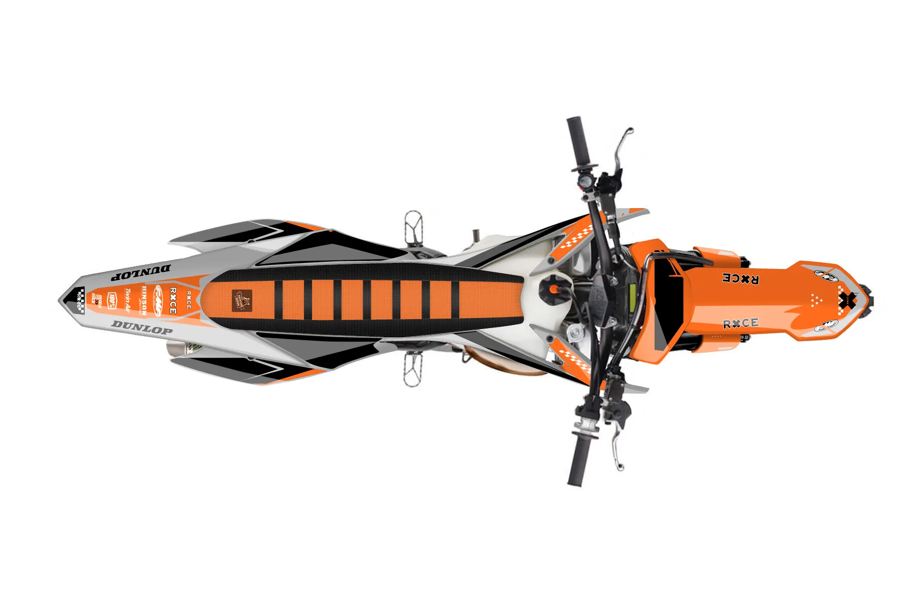 «Canon» — готовый комплект графики серии Staple для KTM MX Graphic Kit KTM SX 150 2015. В комплекте: графика на бак и боковые облицовки, крылья (переднее и заднее), передний щиток, номерные таблички, защита вилки. Материал: ПВХ-винил 80 мкр с холодной ламинацией 300 мкр, общая толщина 380 мкр; покрытие глянцевое или матовое на выбор. Устойчив к UV-излучению, воде, бензину и мойке высокого давления. Клей акриловый на сольвентной основе — постоянный, для гибких пластиков. На простых поверхностях монтируется без нагрева; для сложных изгибов рекомендуем фен. Этот пресет можно заказать как есть или взять за основу в конструкторе: поменять цвета, добавить стартовый номер и свой бренд. Производство — 3–5 рабочих дней, доставка по России СДЭКом или Почтой, по СНГ — курьерскими службами.