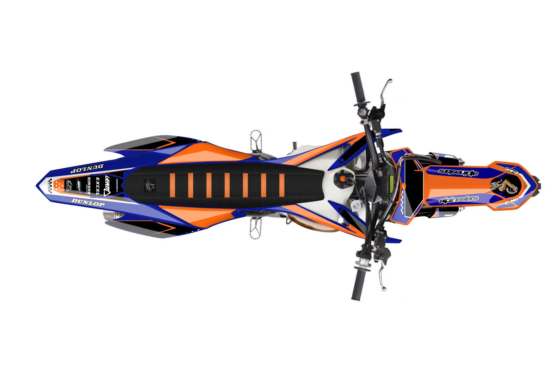 «CustomDesign» — готовый комплект графики серии Staple для KTM MX Graphic Kit KTM SX 150 2015. В комплекте: графика на бак и боковые облицовки, крылья (переднее и заднее), передний щиток, номерные таблички, защита вилки. Материал: ПВХ-винил 80 мкр с холодной ламинацией 300 мкр, общая толщина 380 мкр; покрытие глянцевое или матовое на выбор. Устойчив к UV-излучению, воде, бензину и мойке высокого давления. Клей акриловый на сольвентной основе — постоянный, для гибких пластиков. На простых поверхностях монтируется без нагрева; для сложных изгибов рекомендуем фен. Этот пресет можно заказать как есть или взять за основу в конструкторе: поменять цвета, добавить стартовый номер и свой бренд. Производство — 3–5 рабочих дней, доставка по России СДЭКом или Почтой, по СНГ — курьерскими службами.