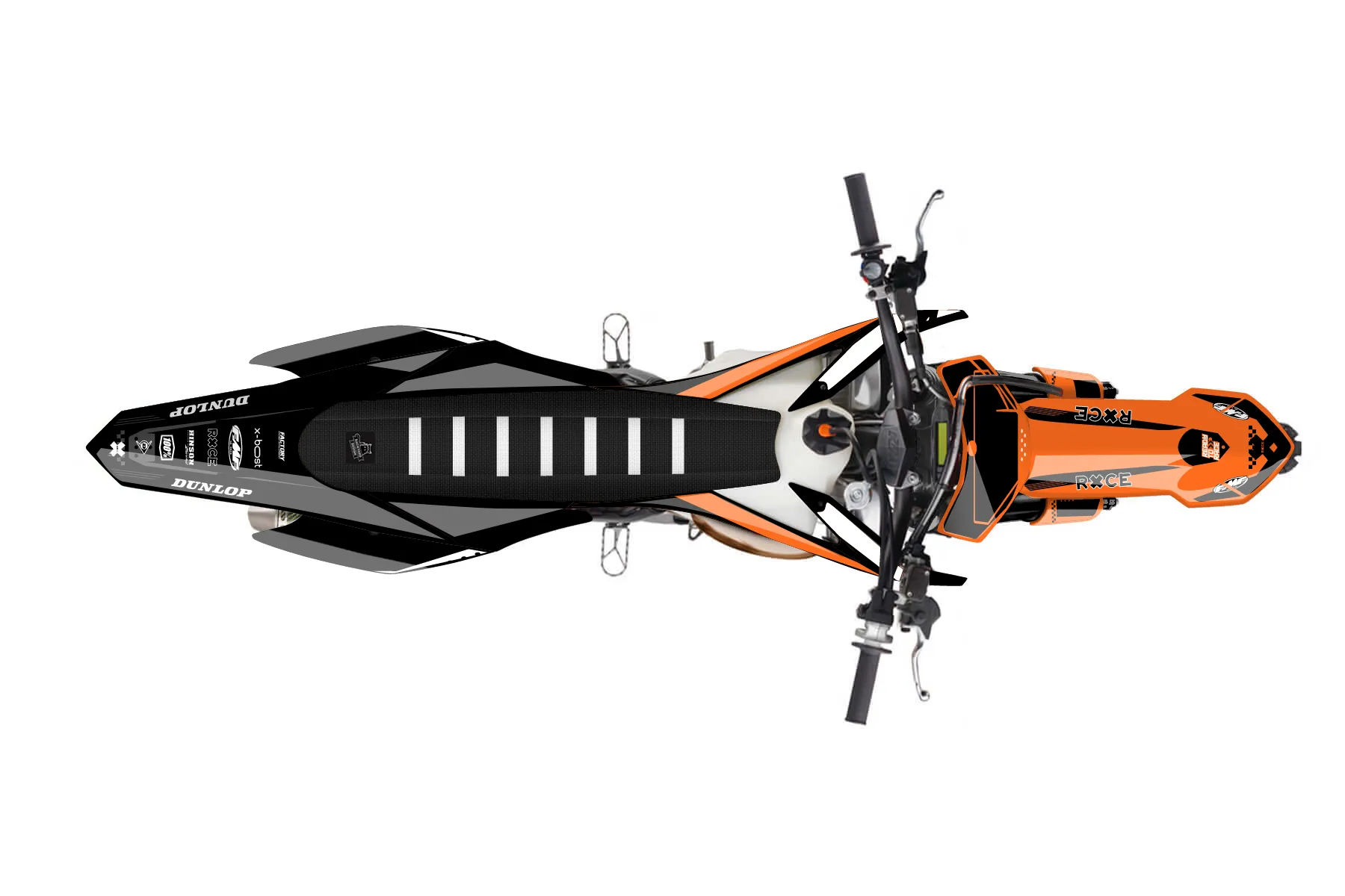«RacerX» — готовый комплект графики серии Staple для KTM MX Graphic Kit KTM SX 150 2015. В комплекте: графика на бак и боковые облицовки, крылья (переднее и заднее), передний щиток, номерные таблички, защита вилки. Материал: ПВХ-винил 80 мкр с холодной ламинацией 300 мкр, общая толщина 380 мкр; покрытие глянцевое или матовое на выбор. Устойчив к UV-излучению, воде, бензину и мойке высокого давления. Клей акриловый на сольвентной основе — постоянный, для гибких пластиков. На простых поверхностях монтируется без нагрева; для сложных изгибов рекомендуем фен. Этот пресет можно заказать как есть или взять за основу в конструкторе: поменять цвета, добавить стартовый номер и свой бренд. Производство — 3–5 рабочих дней, доставка по России СДЭКом или Почтой, по СНГ — курьерскими службами.