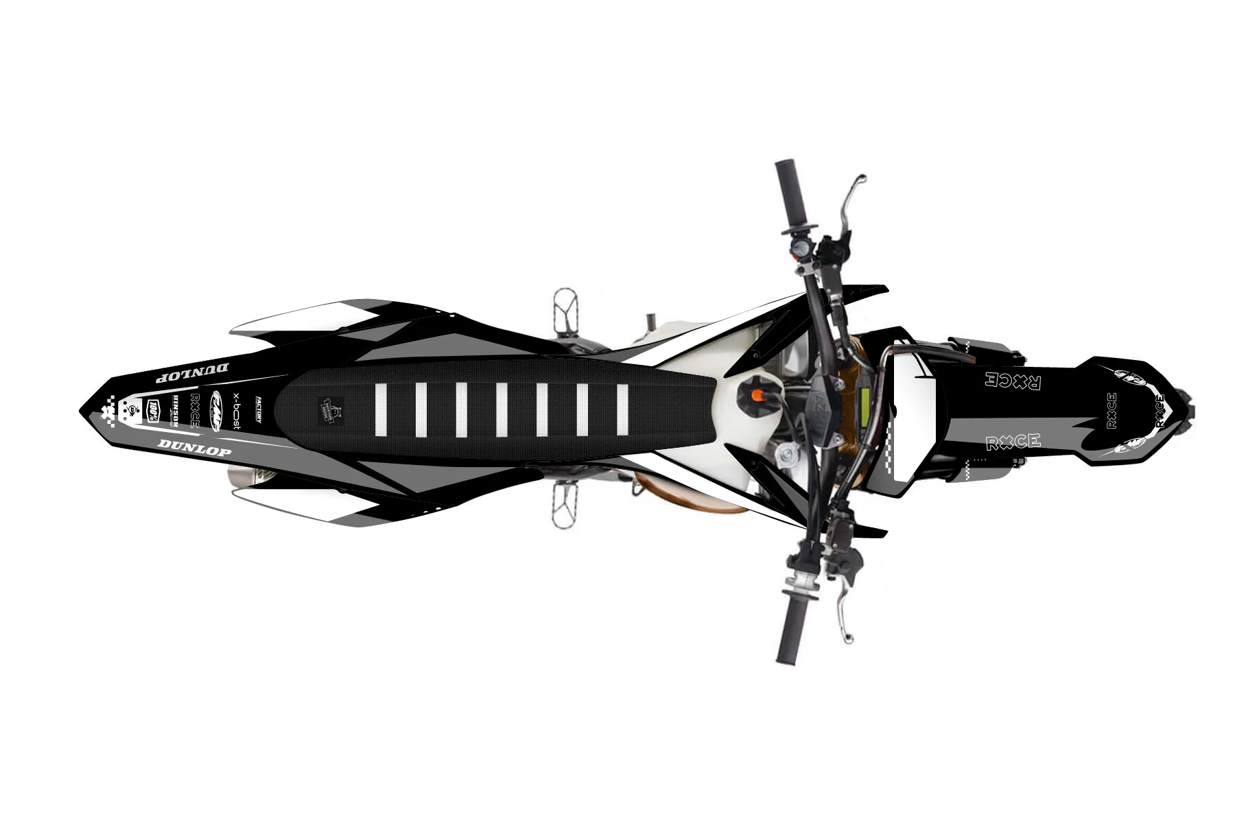 «Ryder» — готовый комплект графики серии Staple для KTM MX Graphic Kit KTM SX 150 2015. В комплекте: графика на бак и боковые облицовки, крылья (переднее и заднее), передний щиток, номерные таблички, защита вилки. Материал: ПВХ-винил 80 мкр с холодной ламинацией 300 мкр, общая толщина 380 мкр; покрытие глянцевое или матовое на выбор. Устойчив к UV-излучению, воде, бензину и мойке высокого давления. Клей акриловый на сольвентной основе — постоянный, для гибких пластиков. На простых поверхностях монтируется без нагрева; для сложных изгибов рекомендуем фен. Этот пресет можно заказать как есть или взять за основу в конструкторе: поменять цвета, добавить стартовый номер и свой бренд. Производство — 3–5 рабочих дней, доставка по России СДЭКом или Почтой, по СНГ — курьерскими службами.