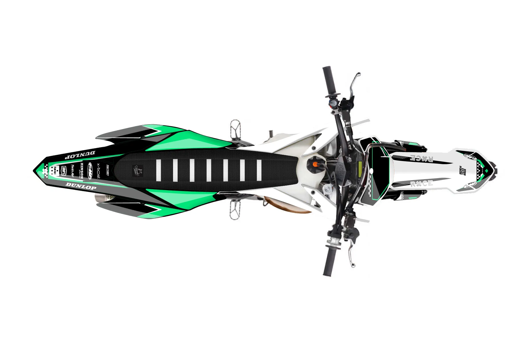 «Supervision» — готовый комплект графики серии Staple для KTM MX Graphic Kit KTM SX 150 2015. В комплекте: графика на бак и боковые облицовки, крылья (переднее и заднее), передний щиток, номерные таблички, защита вилки. Материал: ПВХ-винил 80 мкр с холодной ламинацией 300 мкр, общая толщина 380 мкр; покрытие глянцевое или матовое на выбор. Устойчив к UV-излучению, воде, бензину и мойке высокого давления. Клей акриловый на сольвентной основе — постоянный, для гибких пластиков. На простых поверхностях монтируется без нагрева; для сложных изгибов рекомендуем фен. Этот пресет можно заказать как есть или взять за основу в конструкторе: поменять цвета, добавить стартовый номер и свой бренд. Производство — 3–5 рабочих дней, доставка по России СДЭКом или Почтой, по СНГ — курьерскими службами.