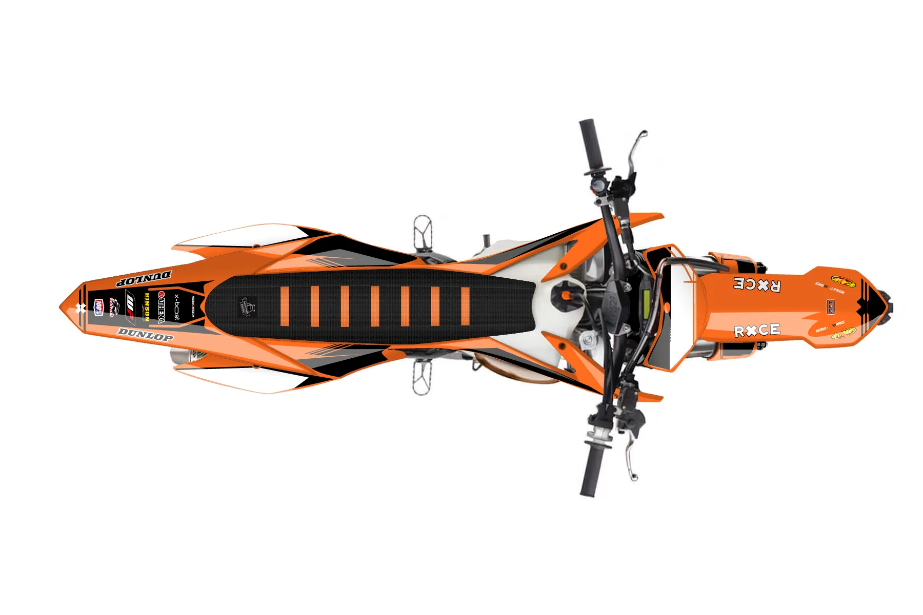 «Intact» — готовый комплект графики серии Untucked для KTM MX Graphic Kit KTM SX 150 2015. В комплекте: графика на бак и боковые облицовки, крылья (переднее и заднее), передний щиток, номерные таблички, защита вилки. Материал: ПВХ-винил 80 мкр с холодной ламинацией 300 мкр, общая толщина 380 мкр; покрытие глянцевое или матовое на выбор. Устойчив к UV-излучению, воде, бензину и мойке высокого давления. Клей акриловый на сольвентной основе — постоянный, для гибких пластиков. На простых поверхностях монтируется без нагрева; для сложных изгибов рекомендуем фен. Этот пресет можно заказать как есть или взять за основу в конструкторе: поменять цвета, добавить стартовый номер и свой бренд. Производство — 3–5 рабочих дней, доставка по России СДЭКом или Почтой, по СНГ — курьерскими службами.