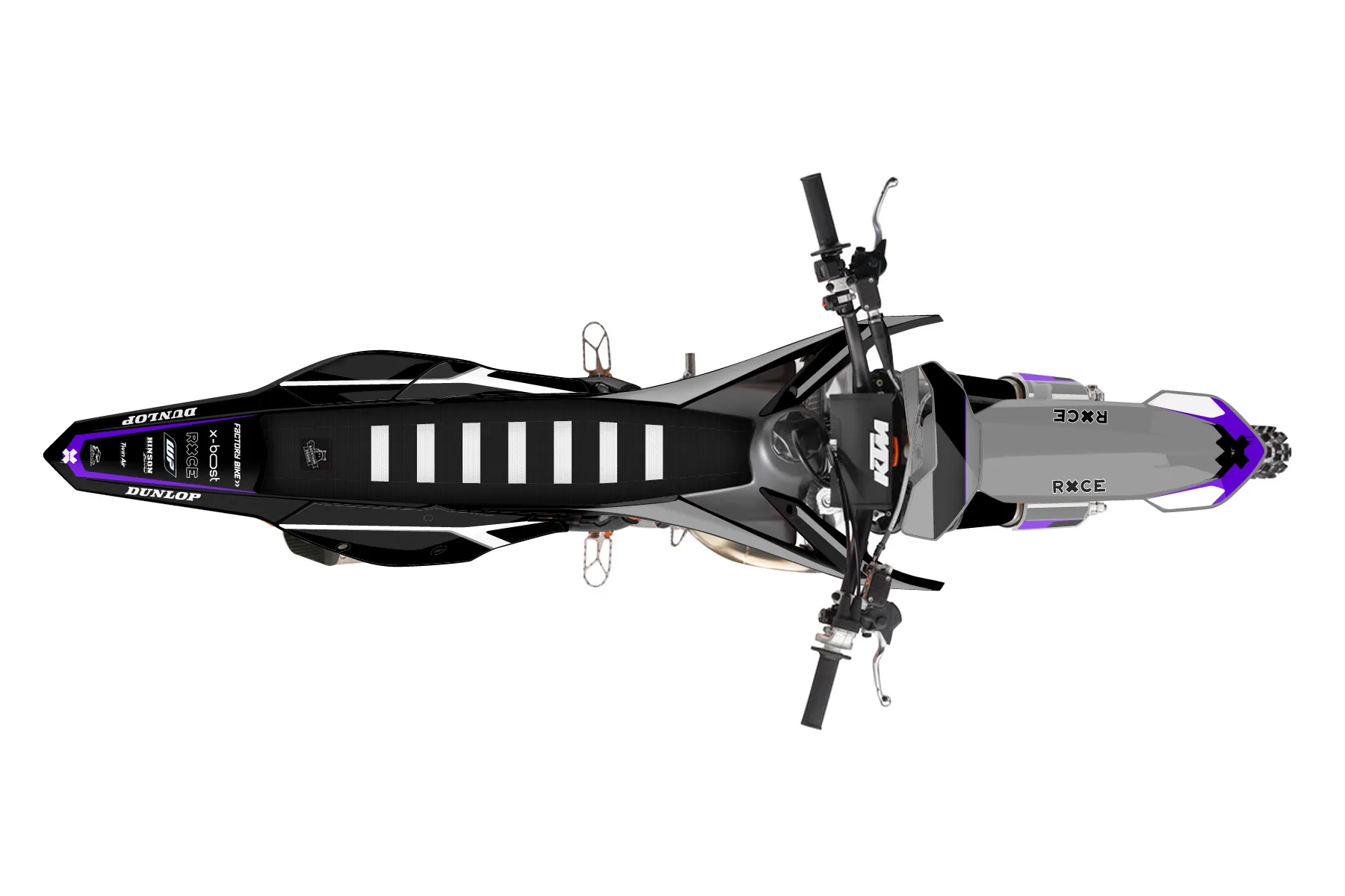 «Cyber Pirate» — готовый комплект графики серии Flow для KTM MX Graphic Kit KTM SX 150 2016. В комплекте: графика на бак и боковые облицовки, крылья (переднее и заднее), передний щиток, номерные таблички, защита вилки. Материал: ПВХ-винил 80 мкр с холодной ламинацией 300 мкр, общая толщина 380 мкр; покрытие глянцевое или матовое на выбор. Устойчив к UV-излучению, воде, бензину и мойке высокого давления. Клей акриловый на сольвентной основе — постоянный, для гибких пластиков. На простых поверхностях монтируется без нагрева; для сложных изгибов рекомендуем фен. Этот пресет можно заказать как есть или взять за основу в конструкторе: поменять цвета, добавить стартовый номер и свой бренд. Производство — 3–5 рабочих дней, доставка по России СДЭКом или Почтой, по СНГ — курьерскими службами.