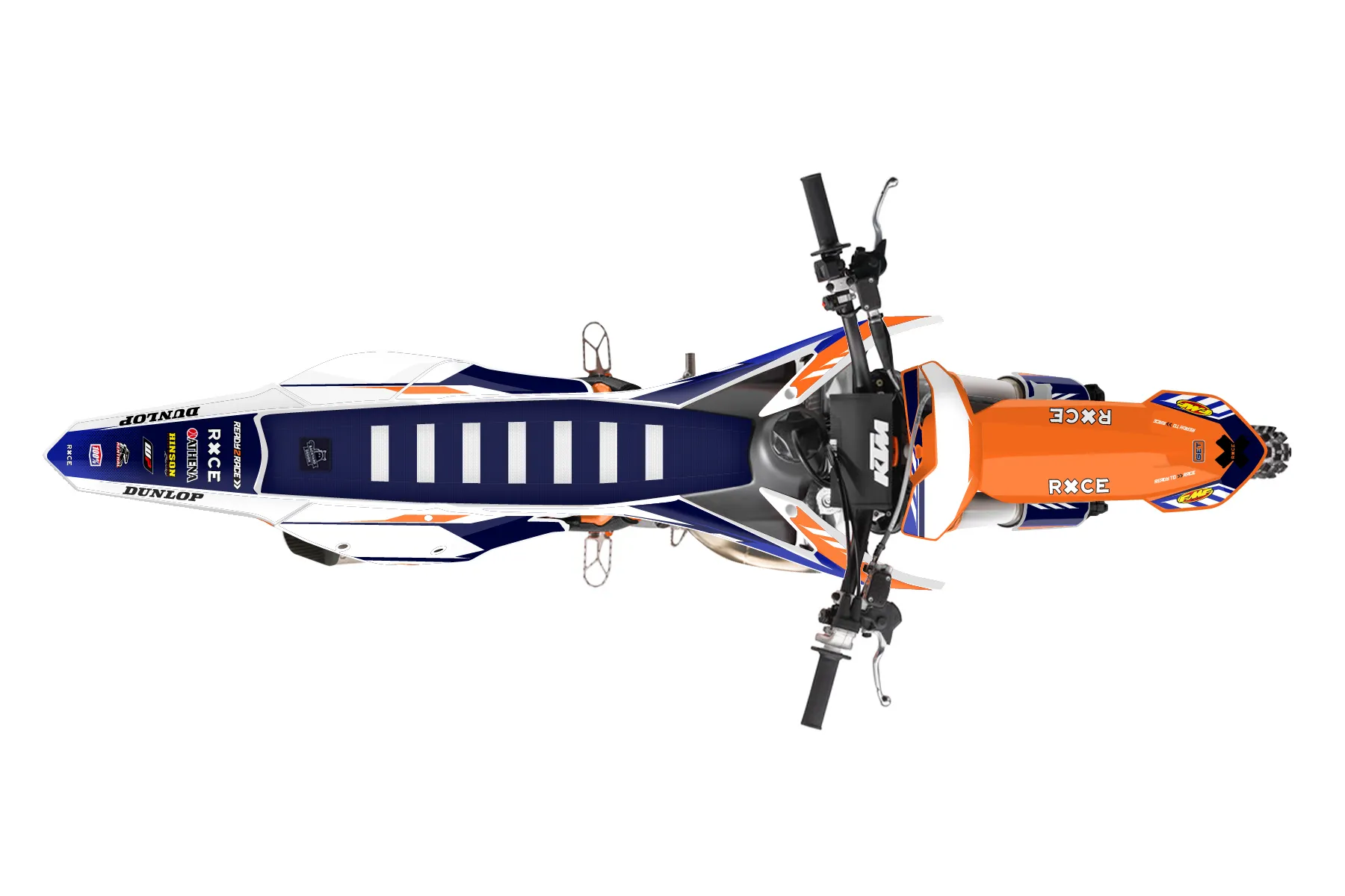 «Fuzion» — готовый комплект графики серии Maverick для KTM MX Graphic Kit KTM SX 150 2016. В комплекте: графика на бак и боковые облицовки, крылья (переднее и заднее), передний щиток, номерные таблички, защита вилки. Материал: ПВХ-винил 80 мкр с холодной ламинацией 300 мкр, общая толщина 380 мкр; покрытие глянцевое или матовое на выбор. Устойчив к UV-излучению, воде, бензину и мойке высокого давления. Клей акриловый на сольвентной основе — постоянный, для гибких пластиков. На простых поверхностях монтируется без нагрева; для сложных изгибов рекомендуем фен. Этот пресет можно заказать как есть или взять за основу в конструкторе: поменять цвета, добавить стартовый номер и свой бренд. Производство — 3–5 рабочих дней, доставка по России СДЭКом или Почтой, по СНГ — курьерскими службами.
