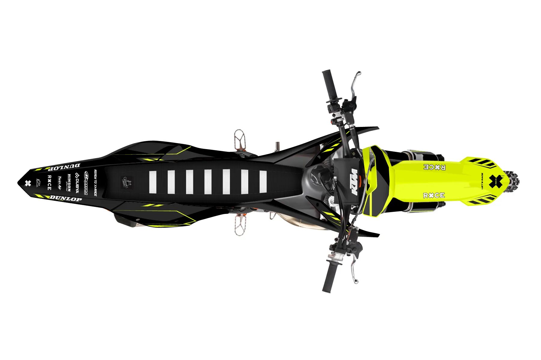 «Kitted Neon» — готовый комплект графики серии Maverick для KTM MX Graphic Kit KTM SX 150 2016. В комплекте: графика на бак и боковые облицовки, крылья (переднее и заднее), передний щиток, номерные таблички, защита вилки. Материал: ПВХ-винил 80 мкр с холодной ламинацией 300 мкр, общая толщина 380 мкр; покрытие глянцевое или матовое на выбор. Устойчив к UV-излучению, воде, бензину и мойке высокого давления. Клей акриловый на сольвентной основе — постоянный, для гибких пластиков. На простых поверхностях монтируется без нагрева; для сложных изгибов рекомендуем фен. Этот пресет можно заказать как есть или взять за основу в конструкторе: поменять цвета, добавить стартовый номер и свой бренд. Производство — 3–5 рабочих дней, доставка по России СДЭКом или Почтой, по СНГ — курьерскими службами.