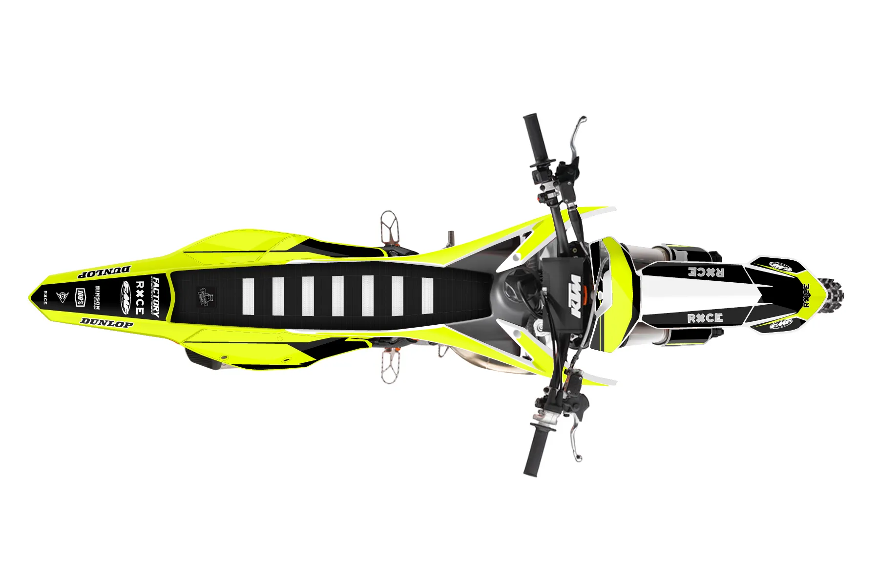 «Ryder Neon» — готовый комплект графики серии Maverick для KTM MX Graphic Kit KTM SX 150 2016. В комплекте: графика на бак и боковые облицовки, крылья (переднее и заднее), передний щиток, номерные таблички, защита вилки. Материал: ПВХ-винил 80 мкр с холодной ламинацией 300 мкр, общая толщина 380 мкр; покрытие глянцевое или матовое на выбор. Устойчив к UV-излучению, воде, бензину и мойке высокого давления. Клей акриловый на сольвентной основе — постоянный, для гибких пластиков. На простых поверхностях монтируется без нагрева; для сложных изгибов рекомендуем фен. Этот пресет можно заказать как есть или взять за основу в конструкторе: поменять цвета, добавить стартовый номер и свой бренд. Производство — 3–5 рабочих дней, доставка по России СДЭКом или Почтой, по СНГ — курьерскими службами.