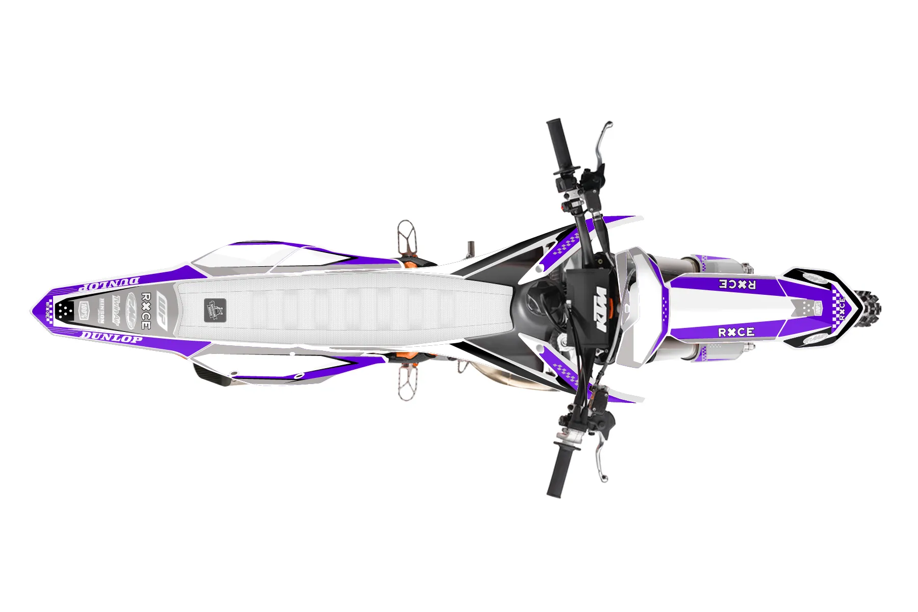 «18Ktm150» — готовый комплект графики серии Staple для KTM MX Graphic Kit KTM SX 150 2016. В комплекте: графика на бак и боковые облицовки, крылья (переднее и заднее), передний щиток, номерные таблички, защита вилки. Материал: ПВХ-винил 80 мкр с холодной ламинацией 300 мкр, общая толщина 380 мкр; покрытие глянцевое или матовое на выбор. Устойчив к UV-излучению, воде, бензину и мойке высокого давления. Клей акриловый на сольвентной основе — постоянный, для гибких пластиков. На простых поверхностях монтируется без нагрева; для сложных изгибов рекомендуем фен. Этот пресет можно заказать как есть или взять за основу в конструкторе: поменять цвета, добавить стартовый номер и свой бренд. Производство — 3–5 рабочих дней, доставка по России СДЭКом или Почтой, по СНГ — курьерскими службами.