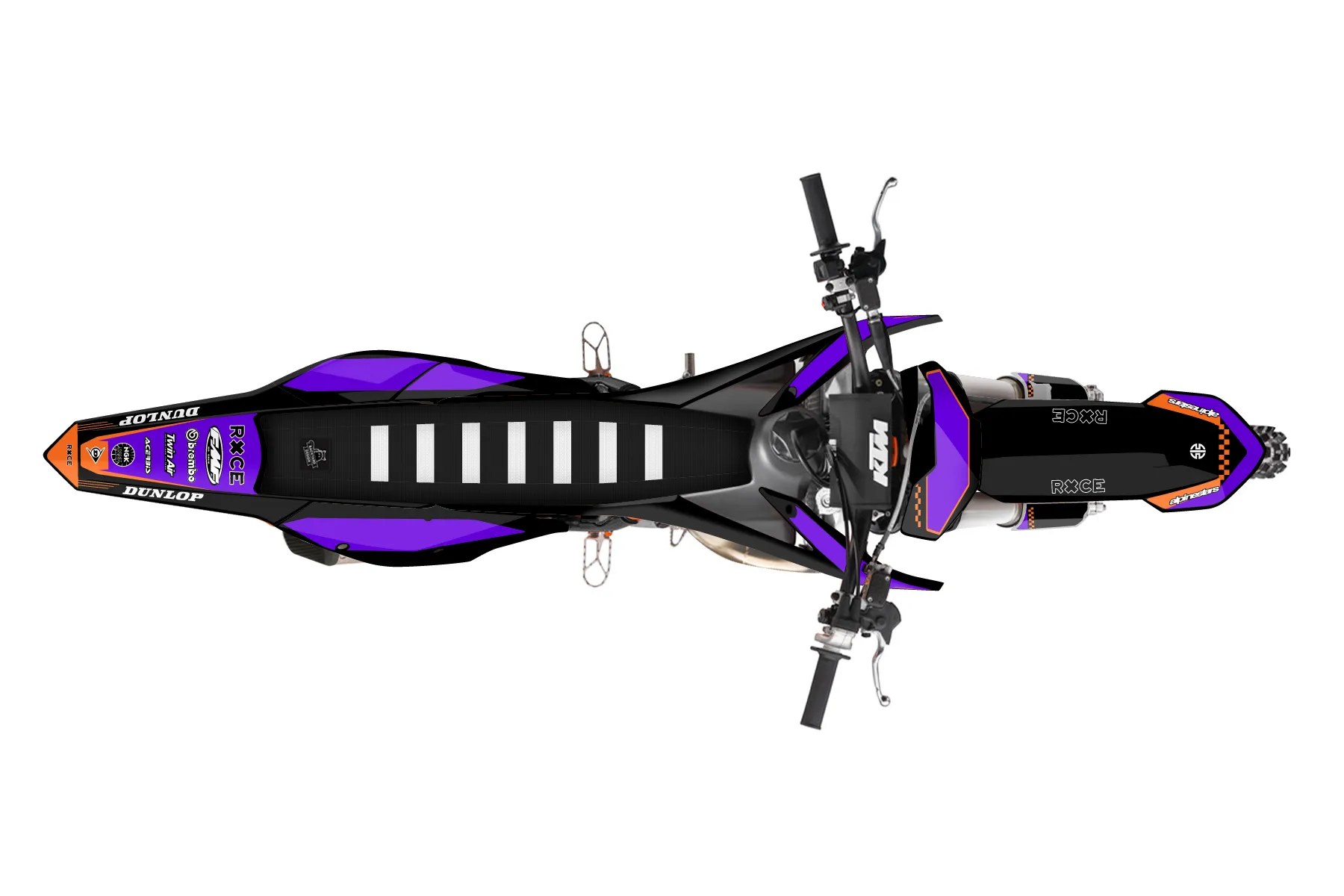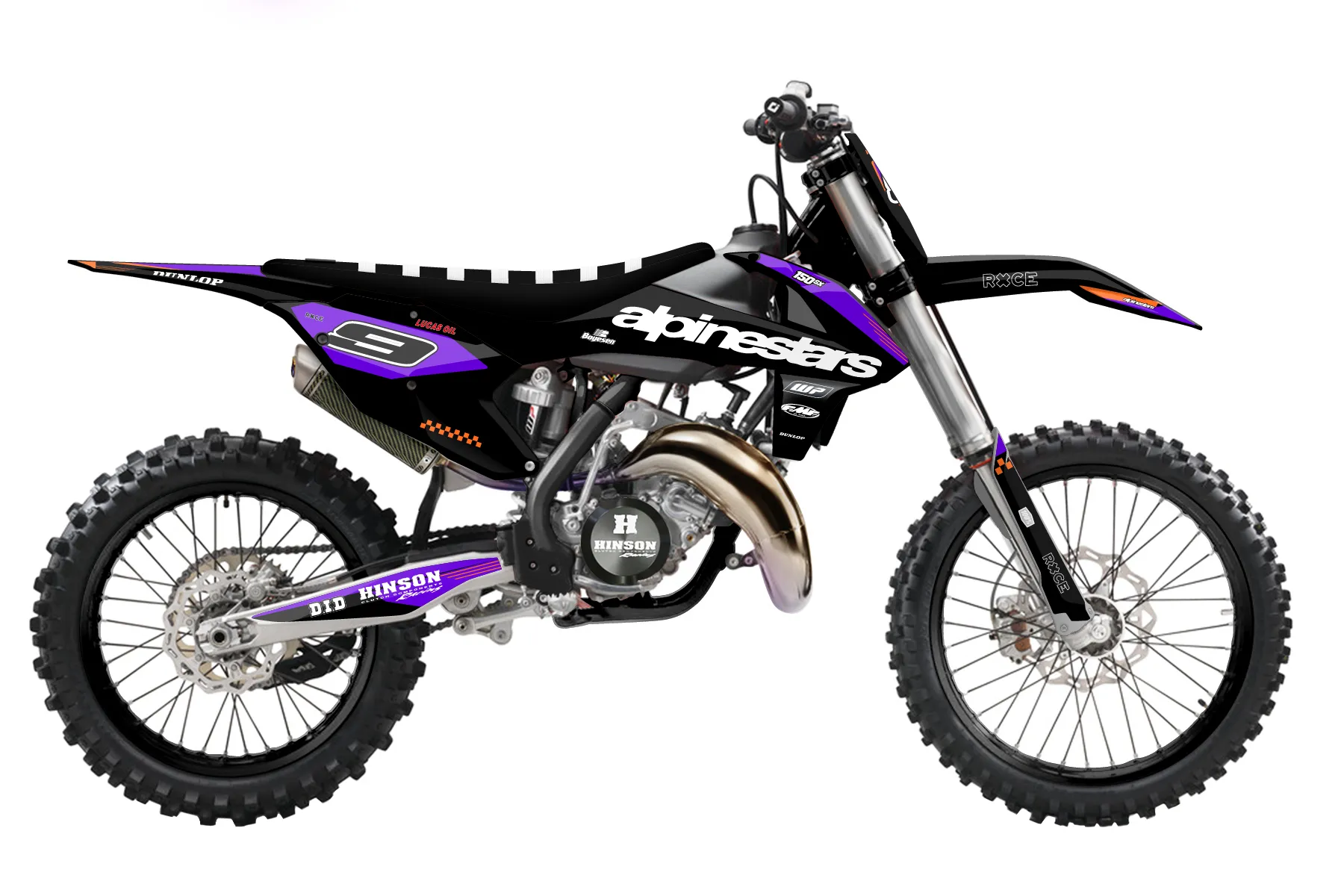 «Alpinestars purple/tiger stripe black and gray» — готовый комплект графики серии Staple для KTM MX Graphic Kit KTM SX 150 2016. В комплекте: графика на бак и боковые облицовки, крылья (переднее и заднее), передний щиток, номерные таблички, защита вилки. Материал: ПВХ-винил 80 мкр с холодной ламинацией 300 мкр, общая толщина 380 мкр; покрытие глянцевое или матовое на выбор. Устойчив к UV-излучению, воде, бензину и мойке высокого давления. Клей акриловый на сольвентной основе — постоянный, для гибких пластиков. На простых поверхностях монтируется без нагрева; для сложных изгибов рекомендуем фен. Этот пресет можно заказать как есть или взять за основу в конструкторе: поменять цвета, добавить стартовый номер и свой бренд. Производство — 3–5 рабочих дней, доставка по России СДЭКом или Почтой, по СНГ — курьерскими службами.