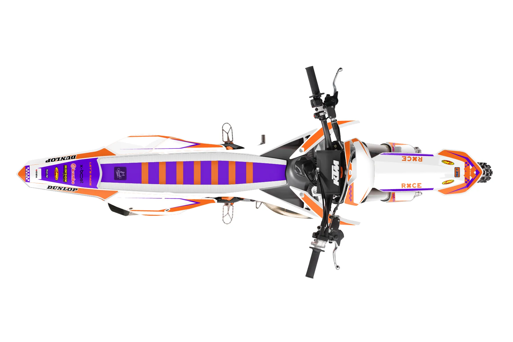 «Retro» — готовый комплект графики серии Staple для KTM MX Graphic Kit KTM SX 150 2016. В комплекте: графика на бак и боковые облицовки, крылья (переднее и заднее), передний щиток, номерные таблички, защита вилки. Материал: ПВХ-винил 80 мкр с холодной ламинацией 300 мкр, общая толщина 380 мкр; покрытие глянцевое или матовое на выбор. Устойчив к UV-излучению, воде, бензину и мойке высокого давления. Клей акриловый на сольвентной основе — постоянный, для гибких пластиков. На простых поверхностях монтируется без нагрева; для сложных изгибов рекомендуем фен. Этот пресет можно заказать как есть или взять за основу в конструкторе: поменять цвета, добавить стартовый номер и свой бренд. Производство — 3–5 рабочих дней, доставка по России СДЭКом или Почтой, по СНГ — курьерскими службами.