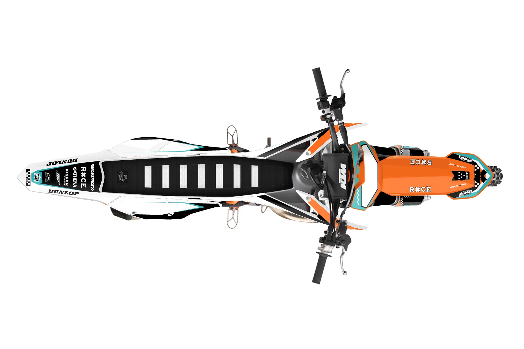 «Rutted» — готовый комплект графики серии Staple для KTM MX Graphic Kit KTM SX 150 2016. В комплекте: графика на бак и боковые облицовки, крылья (переднее и заднее), передний щиток, номерные таблички, защита вилки. Материал: ПВХ-винил 80 мкр с холодной ламинацией 300 мкр, общая толщина 380 мкр; покрытие глянцевое или матовое на выбор. Устойчив к UV-излучению, воде, бензину и мойке высокого давления. Клей акриловый на сольвентной основе — постоянный, для гибких пластиков. На простых поверхностях монтируется без нагрева; для сложных изгибов рекомендуем фен. Этот пресет можно заказать как есть или взять за основу в конструкторе: поменять цвета, добавить стартовый номер и свой бренд. Производство — 3–5 рабочих дней, доставка по России СДЭКом или Почтой, по СНГ — курьерскими службами.