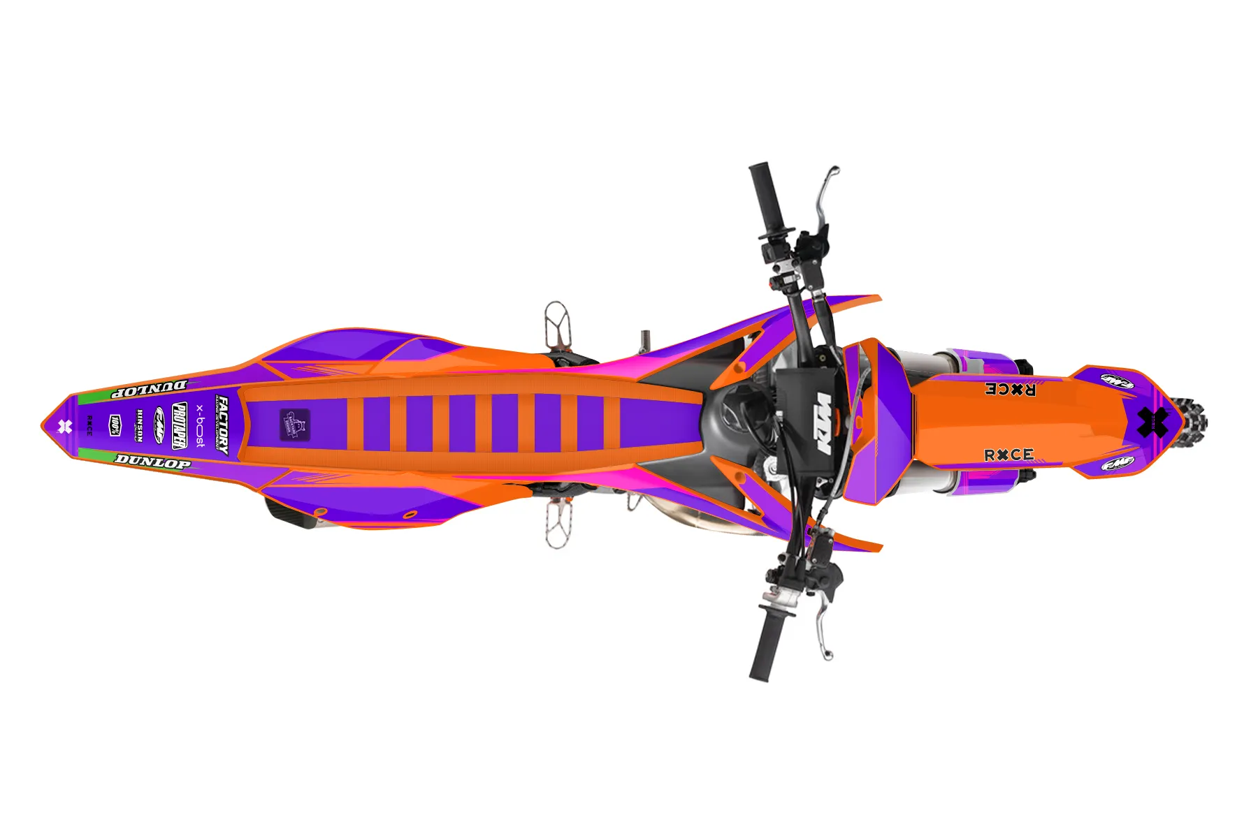 «2017150sx» — готовый комплект графики серии Untucked для KTM MX Graphic Kit KTM SX 150 2016. В комплекте: графика на бак и боковые облицовки, крылья (переднее и заднее), передний щиток, номерные таблички, защита вилки. Материал: ПВХ-винил 80 мкр с холодной ламинацией 300 мкр, общая толщина 380 мкр; покрытие глянцевое или матовое на выбор. Устойчив к UV-излучению, воде, бензину и мойке высокого давления. Клей акриловый на сольвентной основе — постоянный, для гибких пластиков. На простых поверхностях монтируется без нагрева; для сложных изгибов рекомендуем фен. Этот пресет можно заказать как есть или взять за основу в конструкторе: поменять цвета, добавить стартовый номер и свой бренд. Производство — 3–5 рабочих дней, доставка по России СДЭКом или Почтой, по СНГ — курьерскими службами.
