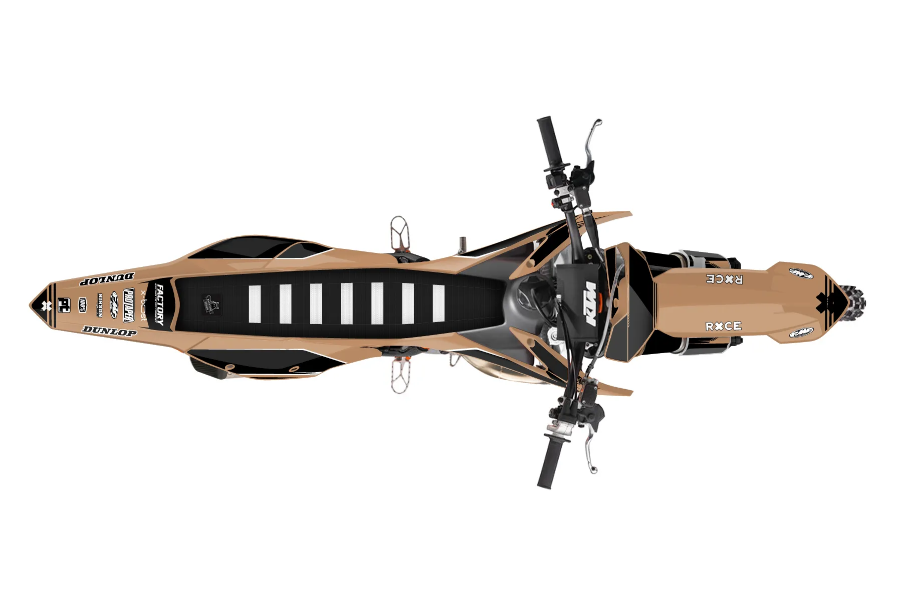 «Entire» — готовый комплект графики серии Untucked для KTM MX Graphic Kit KTM SX 150 2016. В комплекте: графика на бак и боковые облицовки, крылья (переднее и заднее), передний щиток, номерные таблички, защита вилки. Материал: ПВХ-винил 80 мкр с холодной ламинацией 300 мкр, общая толщина 380 мкр; покрытие глянцевое или матовое на выбор. Устойчив к UV-излучению, воде, бензину и мойке высокого давления. Клей акриловый на сольвентной основе — постоянный, для гибких пластиков. На простых поверхностях монтируется без нагрева; для сложных изгибов рекомендуем фен. Этот пресет можно заказать как есть или взять за основу в конструкторе: поменять цвета, добавить стартовый номер и свой бренд. Производство — 3–5 рабочих дней, доставка по России СДЭКом или Почтой, по СНГ — курьерскими службами.