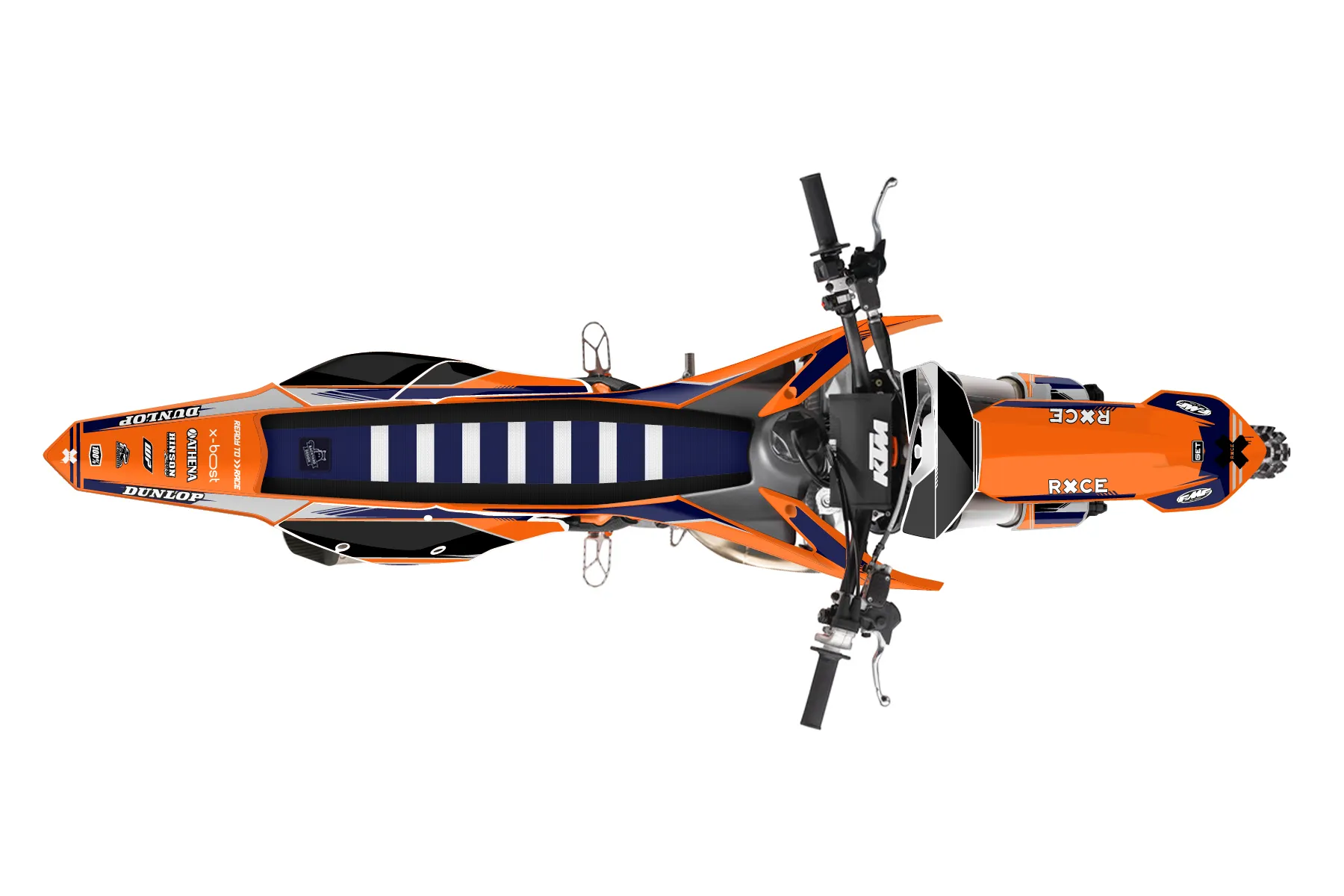 «Ktm 150 sx » — готовый комплект графики серии Untucked для KTM MX Graphic Kit KTM SX 150 2016. В комплекте: графика на бак и боковые облицовки, крылья (переднее и заднее), передний щиток, номерные таблички, защита вилки. Материал: ПВХ-винил 80 мкр с холодной ламинацией 300 мкр, общая толщина 380 мкр; покрытие глянцевое или матовое на выбор. Устойчив к UV-излучению, воде, бензину и мойке высокого давления. Клей акриловый на сольвентной основе — постоянный, для гибких пластиков. На простых поверхностях монтируется без нагрева; для сложных изгибов рекомендуем фен. Этот пресет можно заказать как есть или взять за основу в конструкторе: поменять цвета, добавить стартовый номер и свой бренд. Производство — 3–5 рабочих дней, доставка по России СДЭКом или Почтой, по СНГ — курьерскими службами.