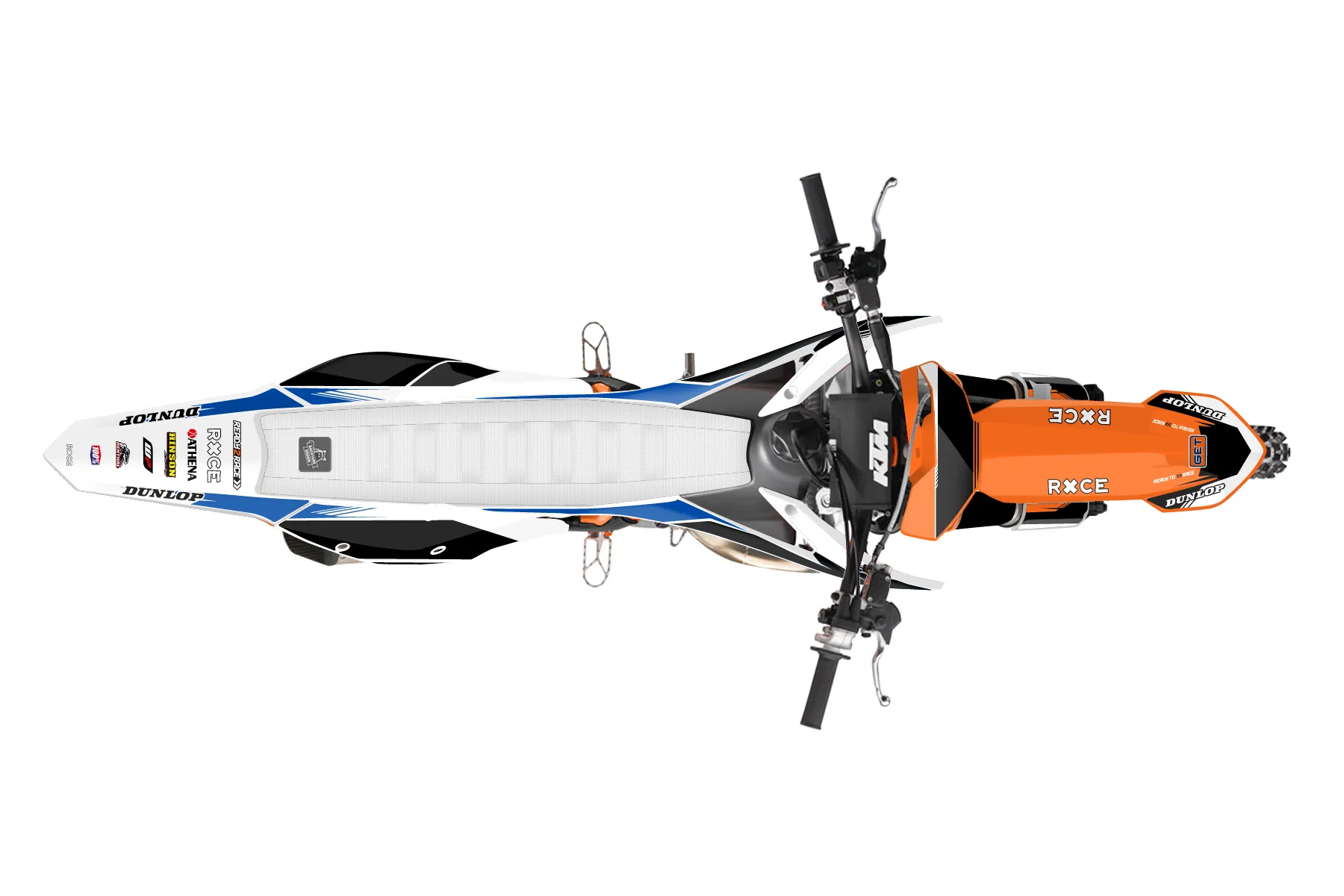 «Ktm 150sx » — готовый комплект графики серии Untucked для KTM MX Graphic Kit KTM SX 150 2016. В комплекте: графика на бак и боковые облицовки, крылья (переднее и заднее), передний щиток, номерные таблички, защита вилки. Материал: ПВХ-винил 80 мкр с холодной ламинацией 300 мкр, общая толщина 380 мкр; покрытие глянцевое или матовое на выбор. Устойчив к UV-излучению, воде, бензину и мойке высокого давления. Клей акриловый на сольвентной основе — постоянный, для гибких пластиков. На простых поверхностях монтируется без нагрева; для сложных изгибов рекомендуем фен. Этот пресет можно заказать как есть или взять за основу в конструкторе: поменять цвета, добавить стартовый номер и свой бренд. Производство — 3–5 рабочих дней, доставка по России СДЭКом или Почтой, по СНГ — курьерскими службами.