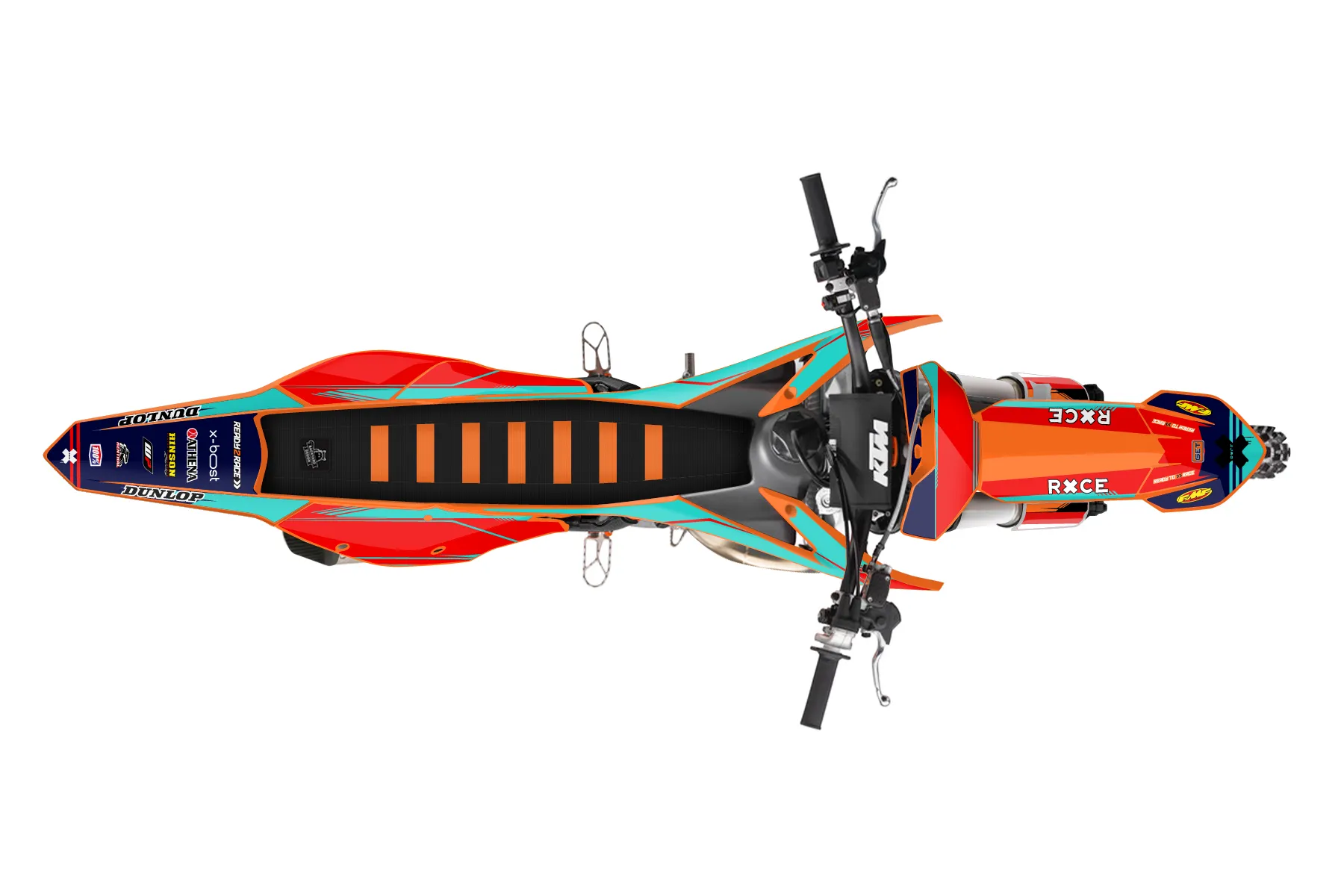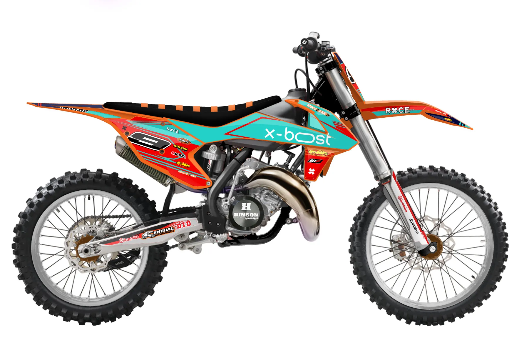 «maybe/teal-red» — готовый комплект графики серии Untucked для KTM MX Graphic Kit KTM SX 150 2016. В комплекте: графика на бак и боковые облицовки, крылья (переднее и заднее), передний щиток, номерные таблички, защита вилки. Материал: ПВХ-винил 80 мкр с холодной ламинацией 300 мкр, общая толщина 380 мкр; покрытие глянцевое или матовое на выбор. Устойчив к UV-излучению, воде, бензину и мойке высокого давления. Клей акриловый на сольвентной основе — постоянный, для гибких пластиков. На простых поверхностях монтируется без нагрева; для сложных изгибов рекомендуем фен. Этот пресет можно заказать как есть или взять за основу в конструкторе: поменять цвета, добавить стартовый номер и свой бренд. Производство — 3–5 рабочих дней, доставка по России СДЭКом или Почтой, по СНГ — курьерскими службами.