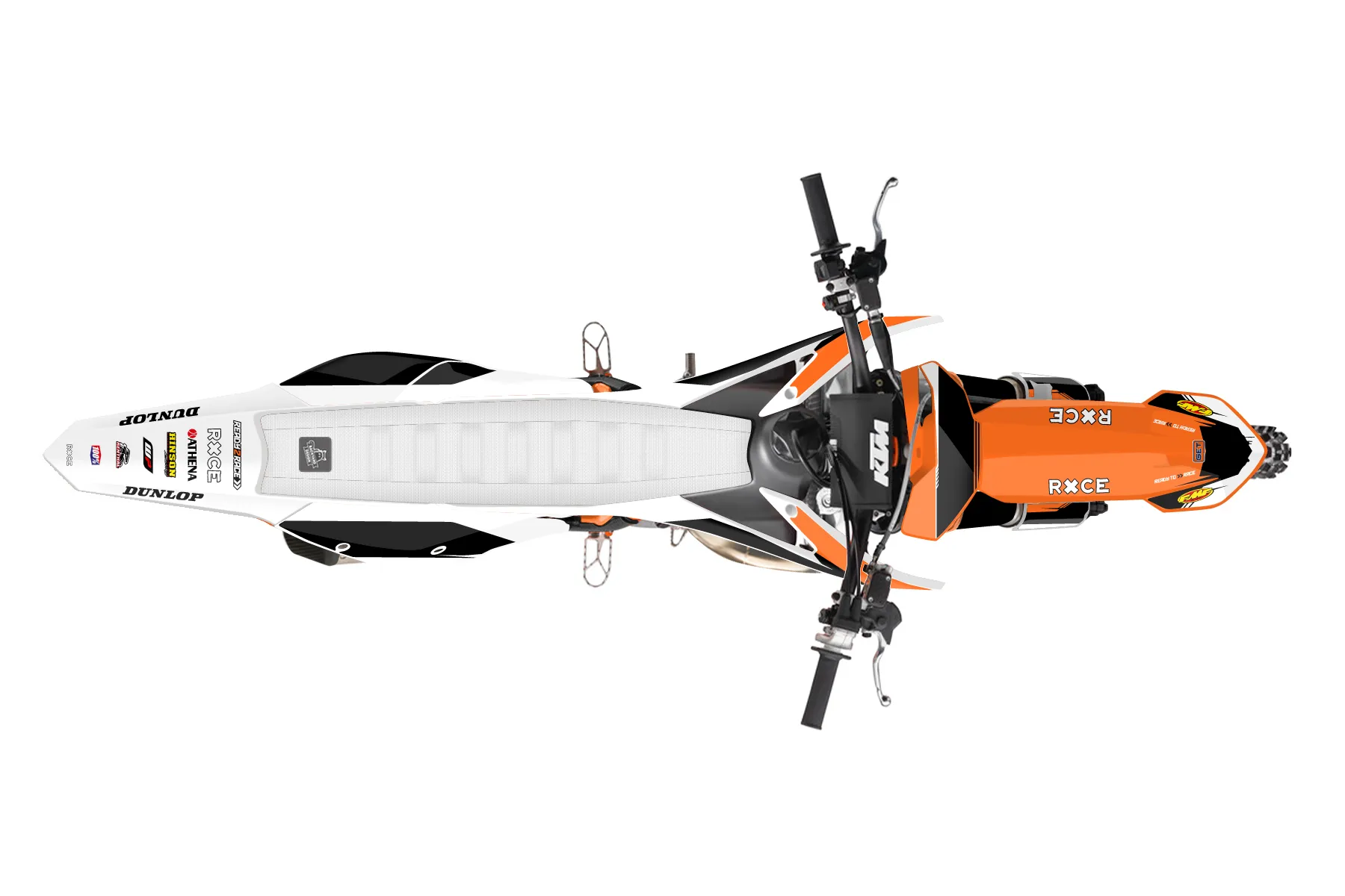 «Superb» — готовый комплект графики серии Untucked для KTM MX Graphic Kit KTM SX 150 2016. В комплекте: графика на бак и боковые облицовки, крылья (переднее и заднее), передний щиток, номерные таблички, защита вилки. Материал: ПВХ-винил 80 мкр с холодной ламинацией 300 мкр, общая толщина 380 мкр; покрытие глянцевое или матовое на выбор. Устойчив к UV-излучению, воде, бензину и мойке высокого давления. Клей акриловый на сольвентной основе — постоянный, для гибких пластиков. На простых поверхностях монтируется без нагрева; для сложных изгибов рекомендуем фен. Этот пресет можно заказать как есть или взять за основу в конструкторе: поменять цвета, добавить стартовый номер и свой бренд. Производство — 3–5 рабочих дней, доставка по России СДЭКом или Почтой, по СНГ — курьерскими службами.