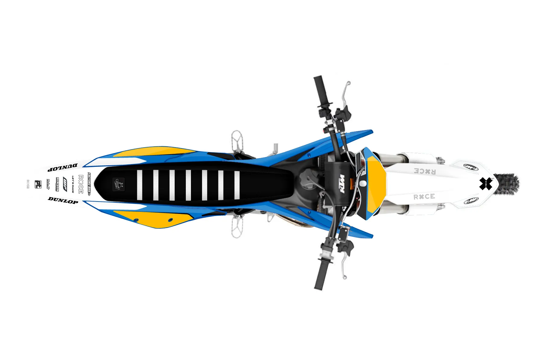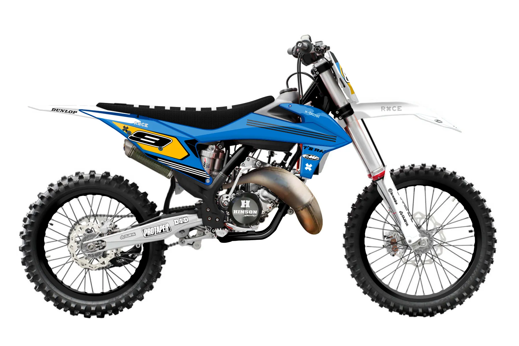 «All-Star» — готовый комплект графики серии Flow для KTM MX Graphic Kit KTM SX 150 2019. В комплекте: графика на бак и боковые облицовки, крылья (переднее и заднее), передний щиток, номерные таблички, защита вилки. Материал: ПВХ-винил 80 мкр с холодной ламинацией 300 мкр, общая толщина 380 мкр; покрытие глянцевое или матовое на выбор. Устойчив к UV-излучению, воде, бензину и мойке высокого давления. Клей акриловый на сольвентной основе — постоянный, для гибких пластиков. На простых поверхностях монтируется без нагрева; для сложных изгибов рекомендуем фен. Этот пресет можно заказать как есть или взять за основу в конструкторе: поменять цвета, добавить стартовый номер и свой бренд. Производство — 3–5 рабочих дней, доставка по России СДЭКом или Почтой, по СНГ — курьерскими службами.
