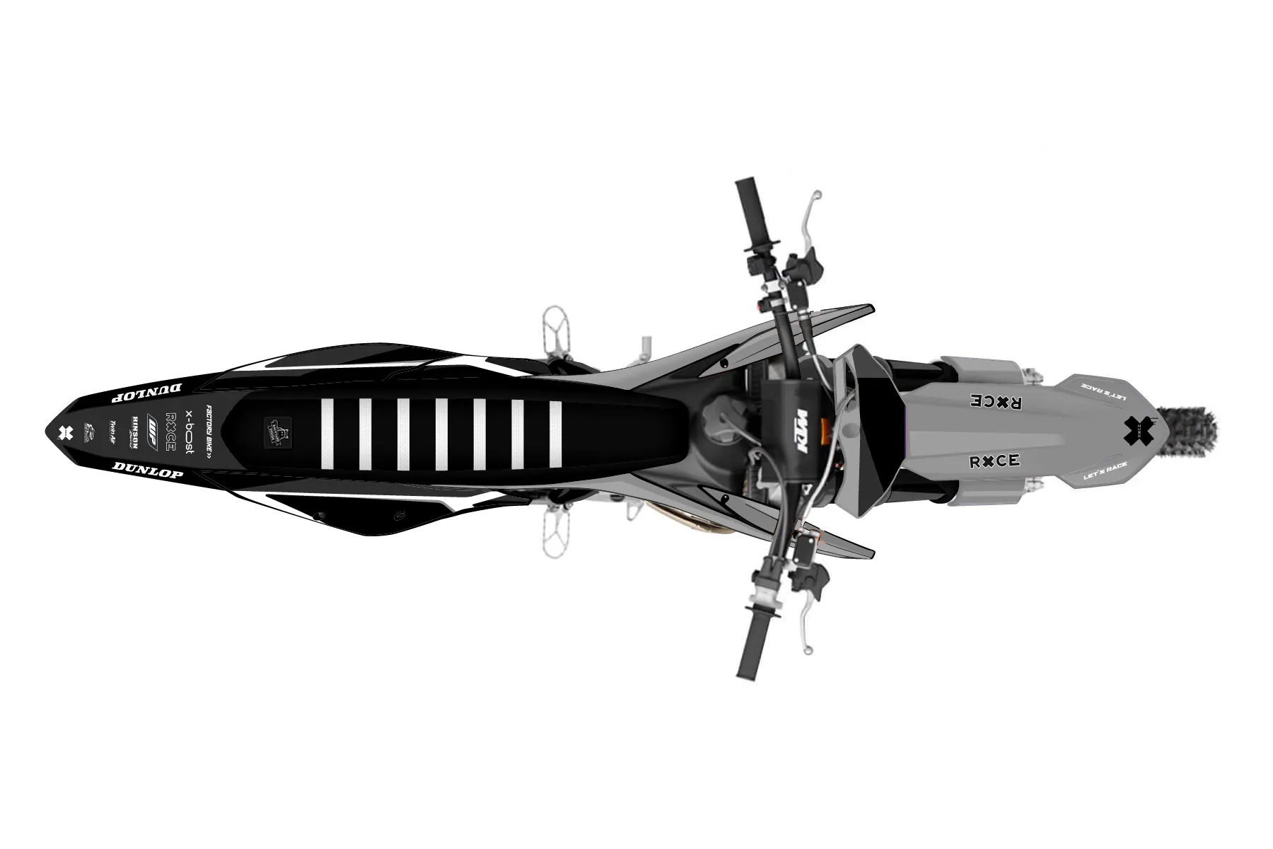 «Cyber Pirate» — готовый комплект графики серии Flow для KTM MX Graphic Kit KTM SX 150 2019. В комплекте: графика на бак и боковые облицовки, крылья (переднее и заднее), передний щиток, номерные таблички, защита вилки. Материал: ПВХ-винил 80 мкр с холодной ламинацией 300 мкр, общая толщина 380 мкр; покрытие глянцевое или матовое на выбор. Устойчив к UV-излучению, воде, бензину и мойке высокого давления. Клей акриловый на сольвентной основе — постоянный, для гибких пластиков. На простых поверхностях монтируется без нагрева; для сложных изгибов рекомендуем фен. Этот пресет можно заказать как есть или взять за основу в конструкторе: поменять цвета, добавить стартовый номер и свой бренд. Производство — 3–5 рабочих дней, доставка по России СДЭКом или Почтой, по СНГ — курьерскими службами.