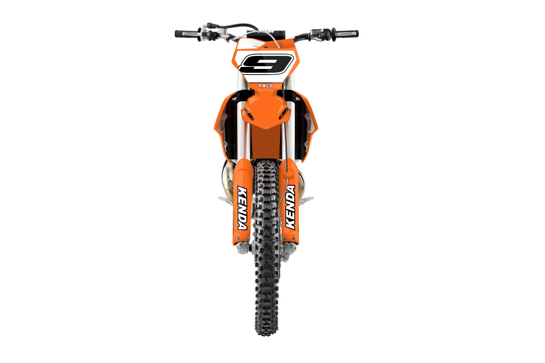 «ktm150sx» — готовый комплект графики серии Flow для KTM MX Graphic Kit KTM SX 150 2019. В комплекте: графика на бак и боковые облицовки, крылья (переднее и заднее), передний щиток, номерные таблички, защита вилки. Материал: ПВХ-винил 80 мкр с холодной ламинацией 300 мкр, общая толщина 380 мкр; покрытие глянцевое или матовое на выбор. Устойчив к UV-излучению, воде, бензину и мойке высокого давления. Клей акриловый на сольвентной основе — постоянный, для гибких пластиков. На простых поверхностях монтируется без нагрева; для сложных изгибов рекомендуем фен. Этот пресет можно заказать как есть или взять за основу в конструкторе: поменять цвета, добавить стартовый номер и свой бренд. Производство — 3–5 рабочих дней, доставка по России СДЭКом или Почтой, по СНГ — курьерскими службами.