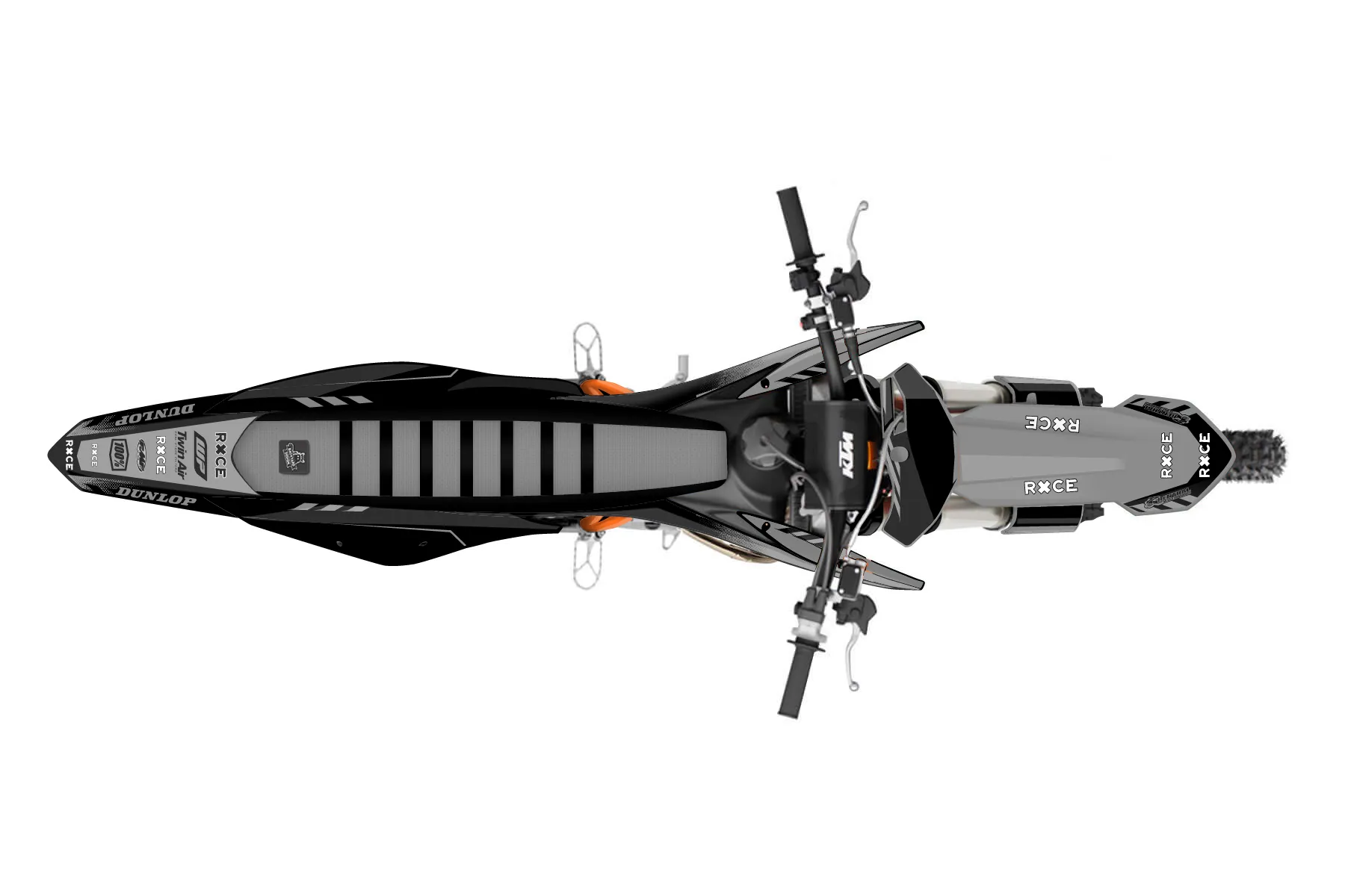 «Custom2021 ktm 150sx Design» — готовый комплект графики серии Maverick для KTM MX Graphic Kit KTM SX 150 2019. В комплекте: графика на бак и боковые облицовки, крылья (переднее и заднее), передний щиток, номерные таблички, защита вилки. Материал: ПВХ-винил 80 мкр с холодной ламинацией 300 мкр, общая толщина 380 мкр; покрытие глянцевое или матовое на выбор. Устойчив к UV-излучению, воде, бензину и мойке высокого давления. Клей акриловый на сольвентной основе — постоянный, для гибких пластиков. На простых поверхностях монтируется без нагрева; для сложных изгибов рекомендуем фен. Этот пресет можно заказать как есть или взять за основу в конструкторе: поменять цвета, добавить стартовый номер и свой бренд. Производство — 3–5 рабочих дней, доставка по России СДЭКом или Почтой, по СНГ — курьерскими службами.