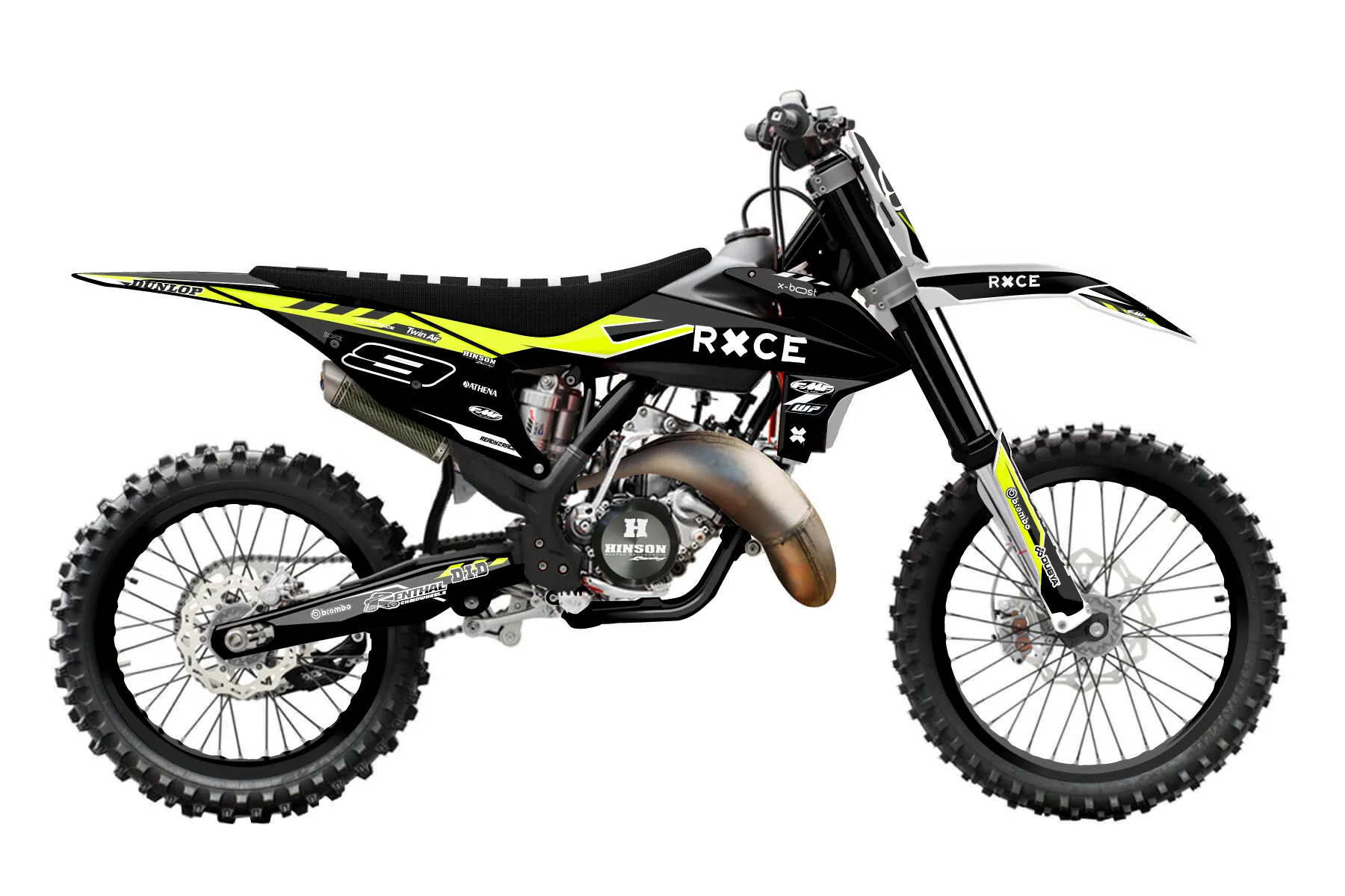 «Daze Fluo» — готовый комплект графики серии Maverick для KTM MX Graphic Kit KTM SX 150 2019. В комплекте: графика на бак и боковые облицовки, крылья (переднее и заднее), передний щиток, номерные таблички, защита вилки. Материал: ПВХ-винил 80 мкр с холодной ламинацией 300 мкр, общая толщина 380 мкр; покрытие глянцевое или матовое на выбор. Устойчив к UV-излучению, воде, бензину и мойке высокого давления. Клей акриловый на сольвентной основе — постоянный, для гибких пластиков. На простых поверхностях монтируется без нагрева; для сложных изгибов рекомендуем фен. Этот пресет можно заказать как есть или взять за основу в конструкторе: поменять цвета, добавить стартовый номер и свой бренд. Производство — 3–5 рабочих дней, доставка по России СДЭКом или Почтой, по СНГ — курьерскими службами.